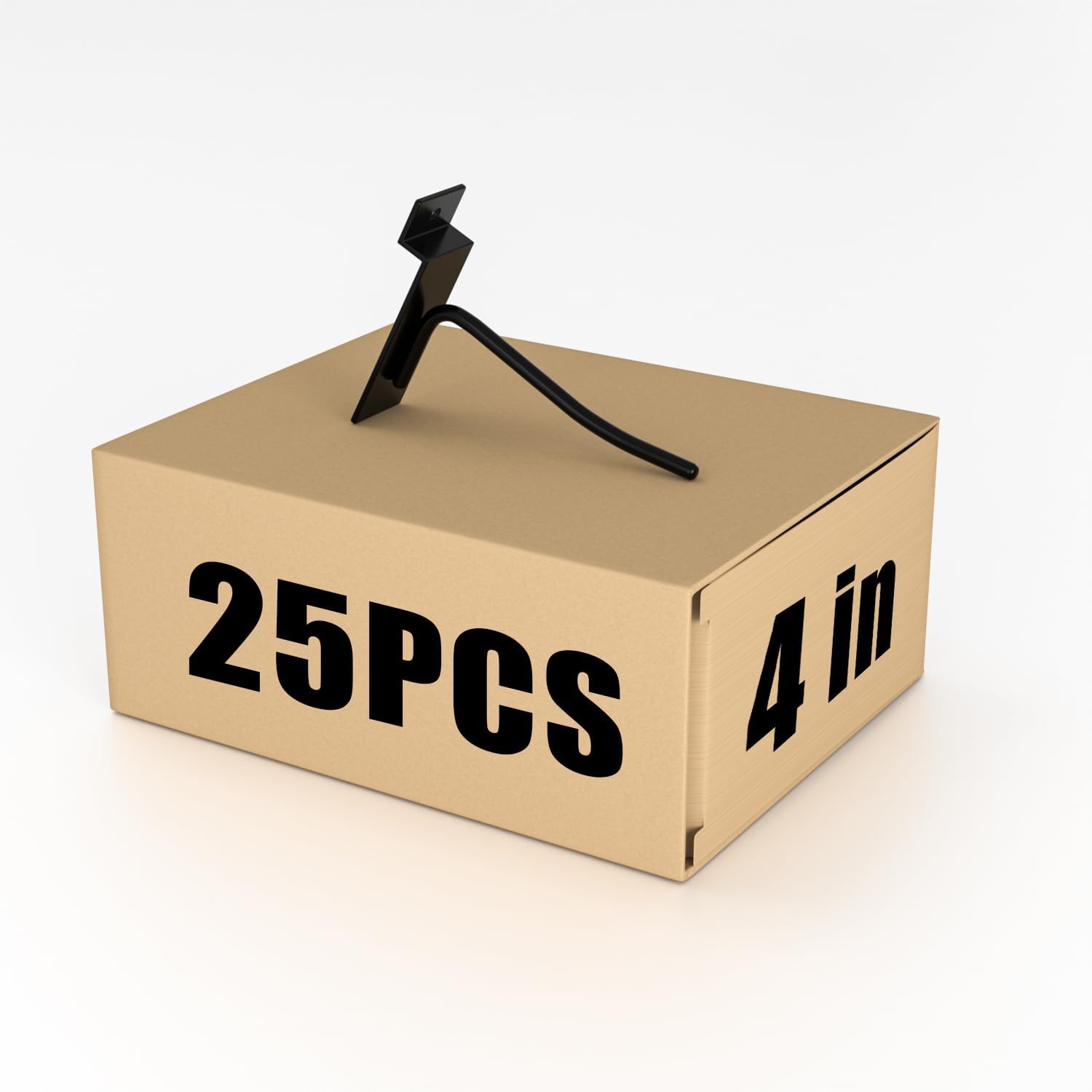 - PACKAGE CONTENTS: Set of 25 black slatwall hooks measuring 4 inches in length, perfect for versatile storage and organization needs