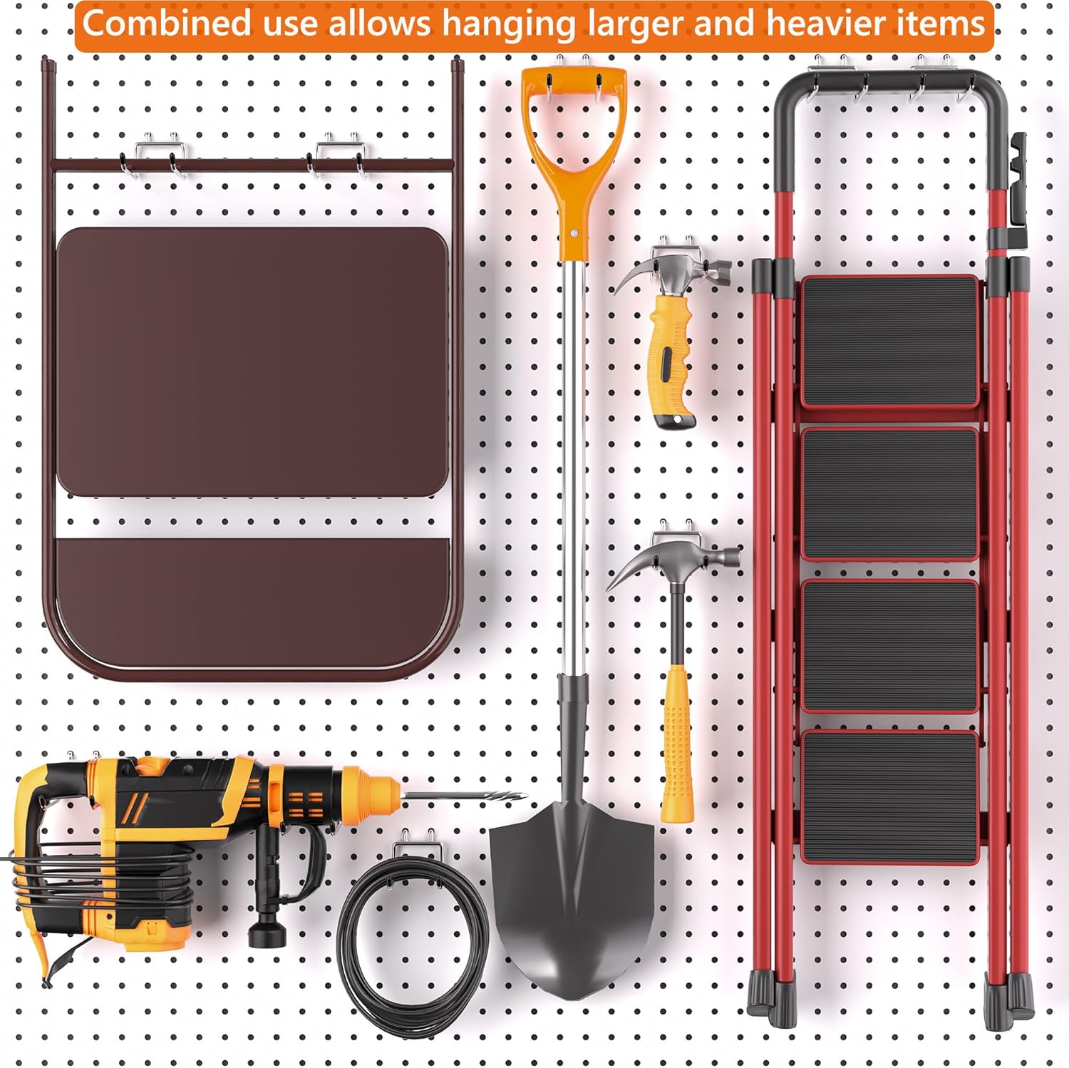 - Universal Fit for Any Pegboard: Works seamlessly with all standard 1-inch spaced pegboards (1/4" hole diameter)—whether wood or metal. Ideal for organizing garages, workshops, or retail displays with ease.