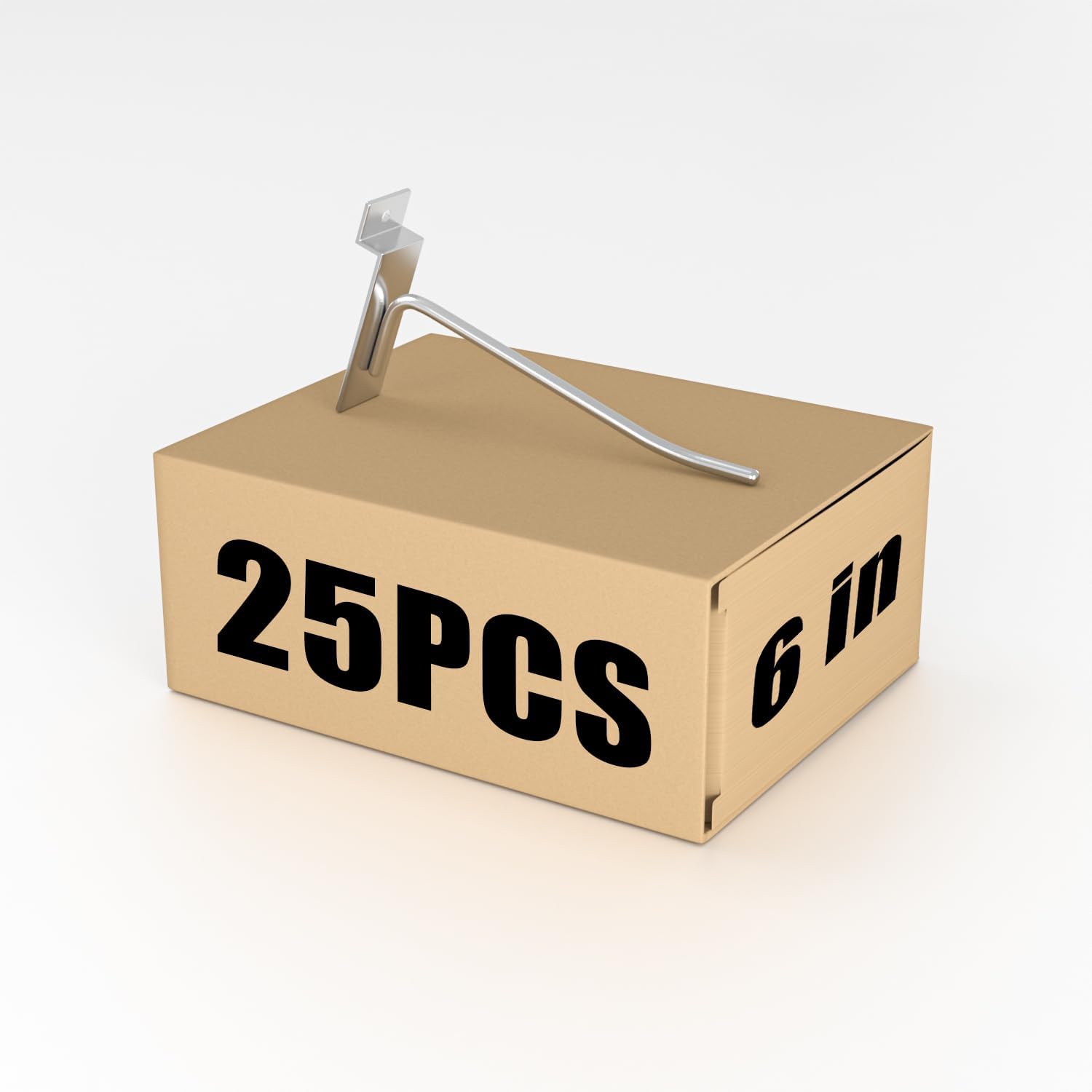 - PACKAGE CONTENTS: Set of 25 silver slatwall hooks measuring 6 inches in length, perfect for versatile storage and organization needs