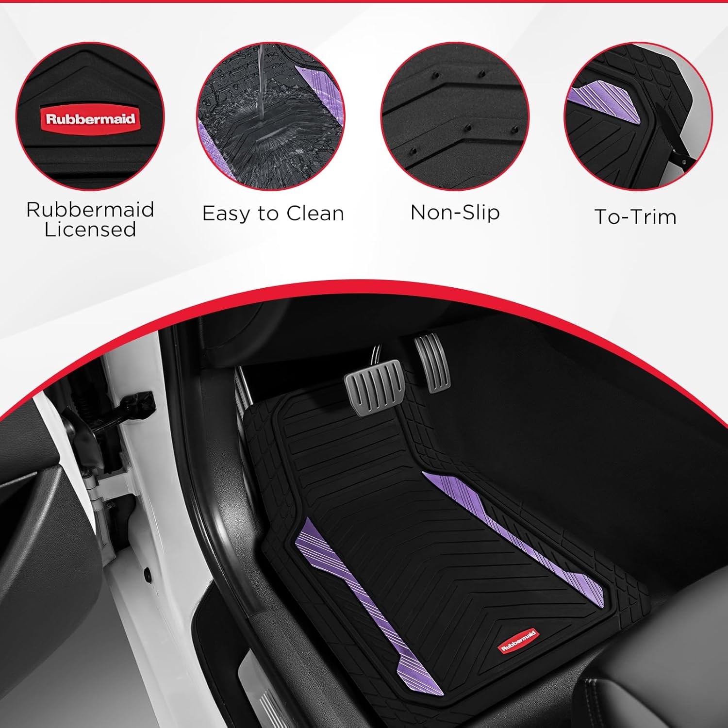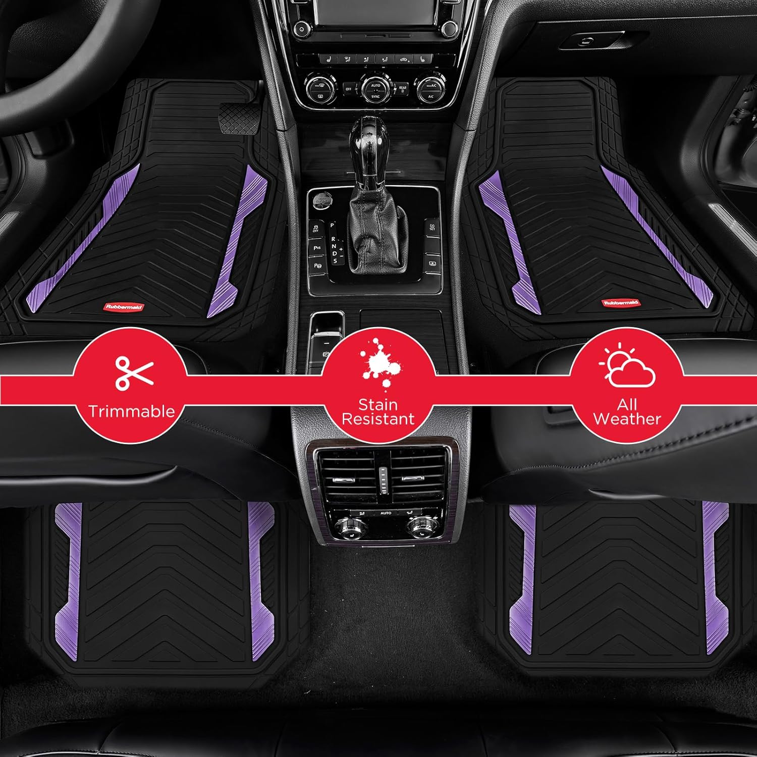 Rubbermaid Car Floor Mat, Heavy Duty All-Weather Car Mats Full Set with Dual-Tone Purple Aluminum Inserts – Universal Fit, Anti-Slip Backing, Trim-to-Fit for Most SUV, Sedan, Van