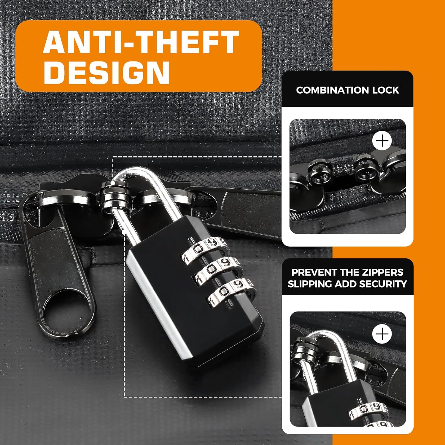 - ANTI-SLIP & SECURITY - roof rack storage includes 8 reinforced straps,6 door hooks, Anti-Slip Mat, combination lock, That not only prevents from sliding, but also increases the security of your luggage; Whether you're driving on the highway or over rough terrain, non-slip mat will keep your cargo bags firmly in place prevents paint scratches, prevents excessive noise, Enhances driving safety. give you peace of mind while on the road steer
