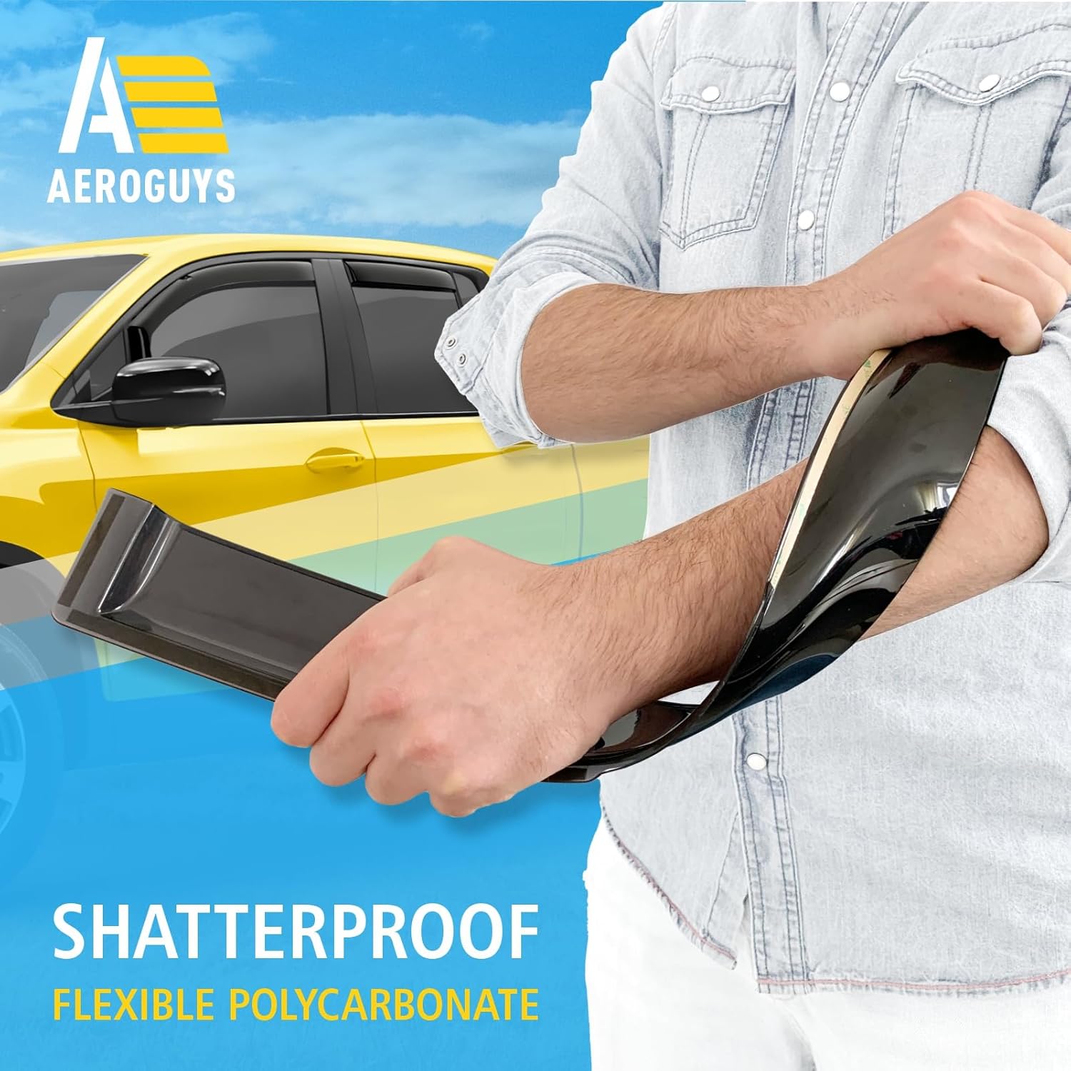 - Incredibly Durable AEROGUYS Auto Window Deflectors – They are made with strong and tough polycarbonate which is clear and scratch-resistant. They also provide UV protection making your ride more comfortable under all weather conditions.