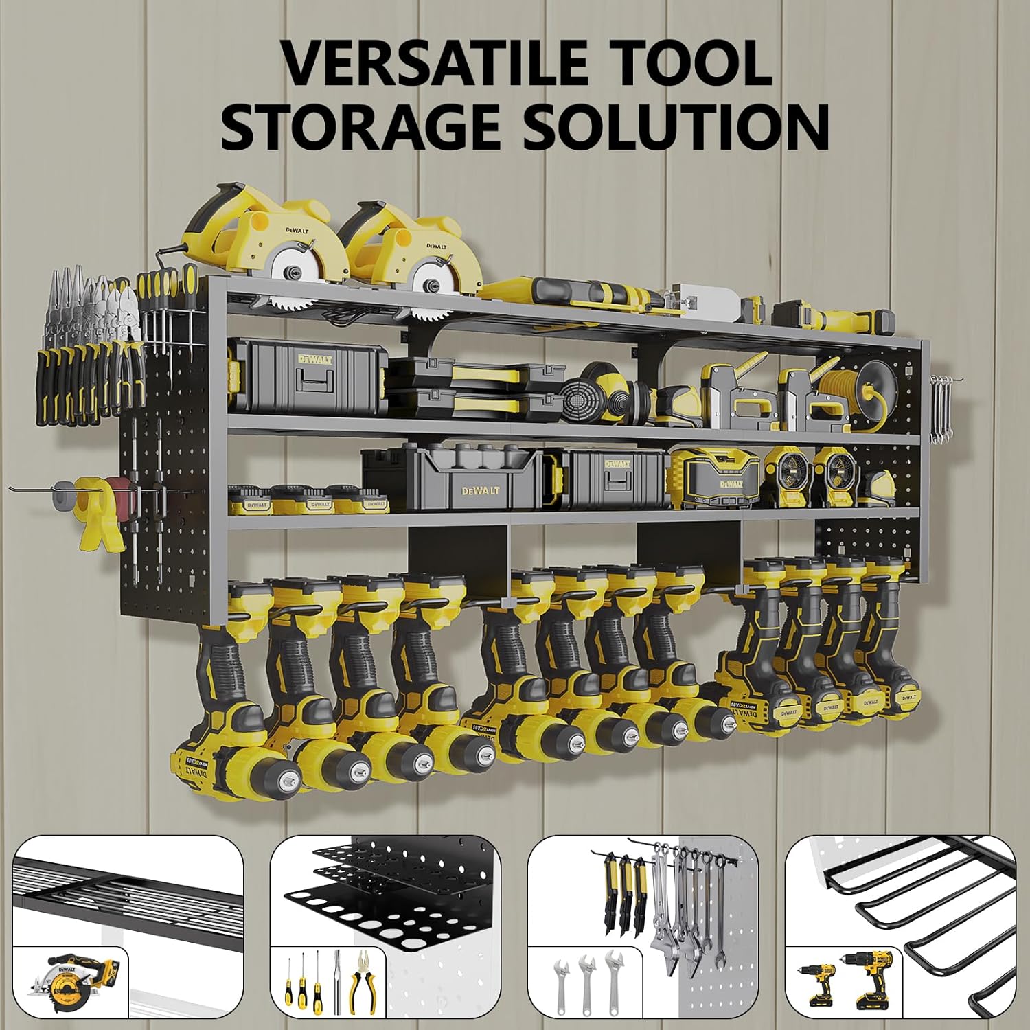 - Universal Compatibility, Lifetime Durability: Installs on all 16" stud walls (pegboard/tile/concrete). Precisely engineered for DeWalt, Milwaukee, RYOBI tools. Your eternal garage partner.