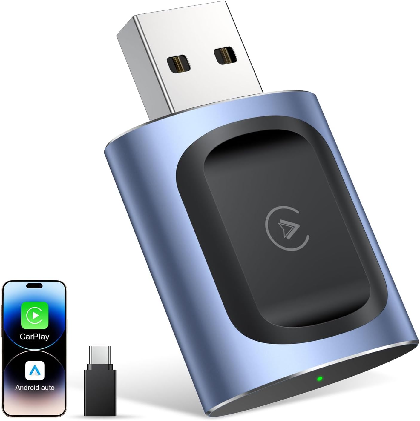 AuroraLink Wireless Carplay & Android Auto Adapter 2-in-1 Stable & No Delay Carplay Wireless Adapter Convert Wired to Wireless Car Play Dongle for iOS 10+/Android 11+ (Blue)