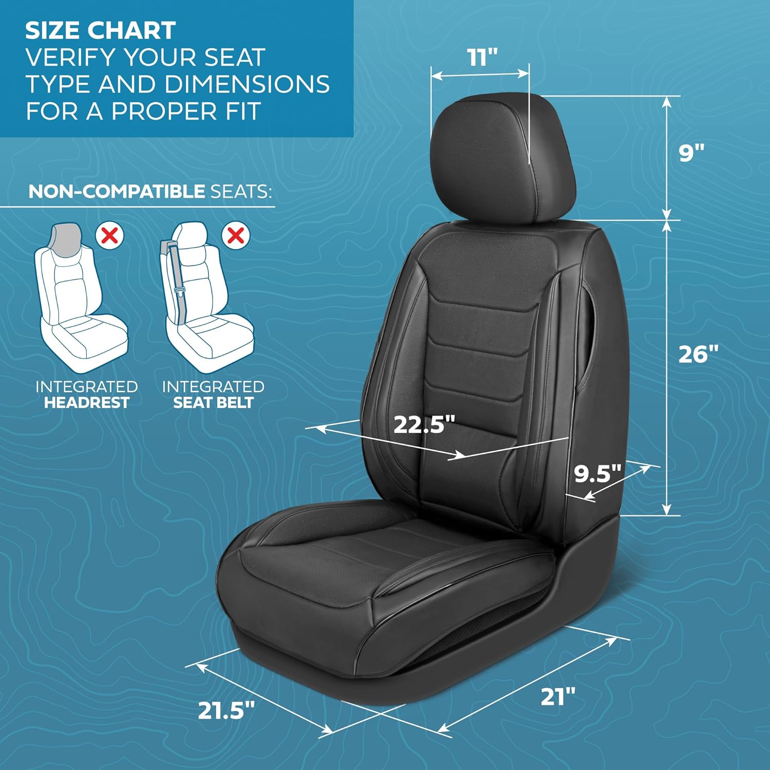 - ULTIMATE PROTECTION: MotorBox faux leather car seat covers offer ultimate protection against spills, stains, dirt, and wear. Designed to shield your seats from daily damage, these covers help maintain the original condition of your car’s interior, ensuring durability and extending the lifespan of your vehicle’s seats. Not just for cars, these are leather seat covers for trucks & SUVs too!