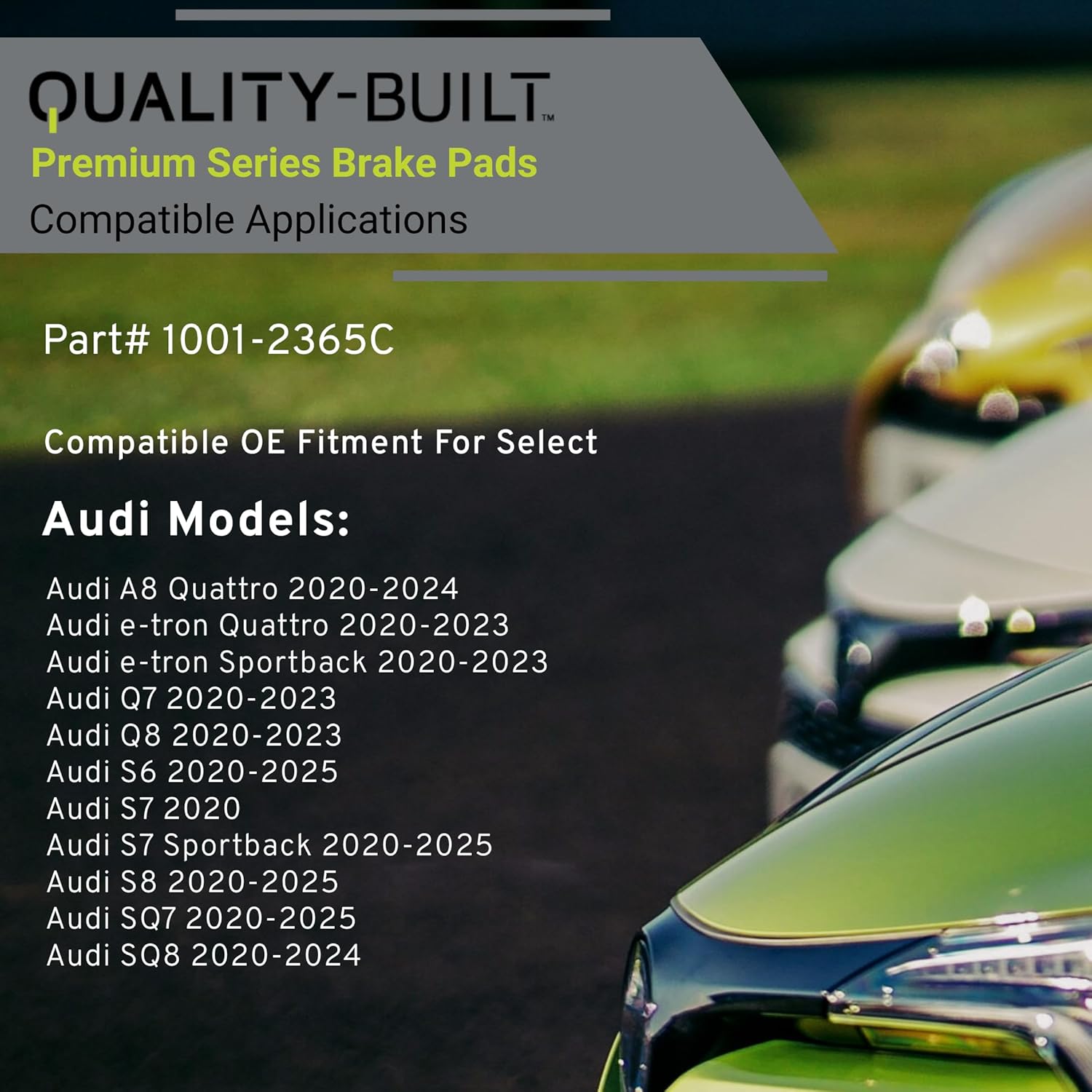 Premium Ceramic Rear Brake Pads (1001-2365C) Compatible with 2020-2025 Audi (A8 Quattro/e-tron Quattro/e-tron Sportback/Q7/Q8/S6/S7/S7 Sportback/S8/SQ7/SQ8)