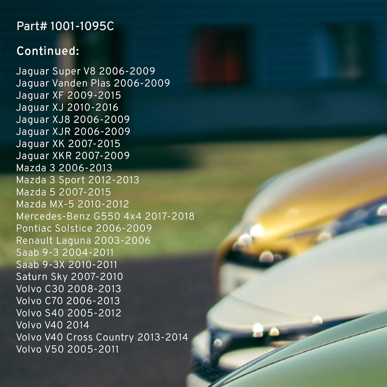 - FITMENT LIST: Select Models 2003-2023 SAAB/ VOLVO/ PONTIAC/ MAZDA/ JAGUAR/ SATURN/ CHEVROLET/ CADILLAC/ RENAULT/ FORD/ MERCEDES-BENZ (1001-1095C) Verify Fitment using AmazonConfirmedFit tool.