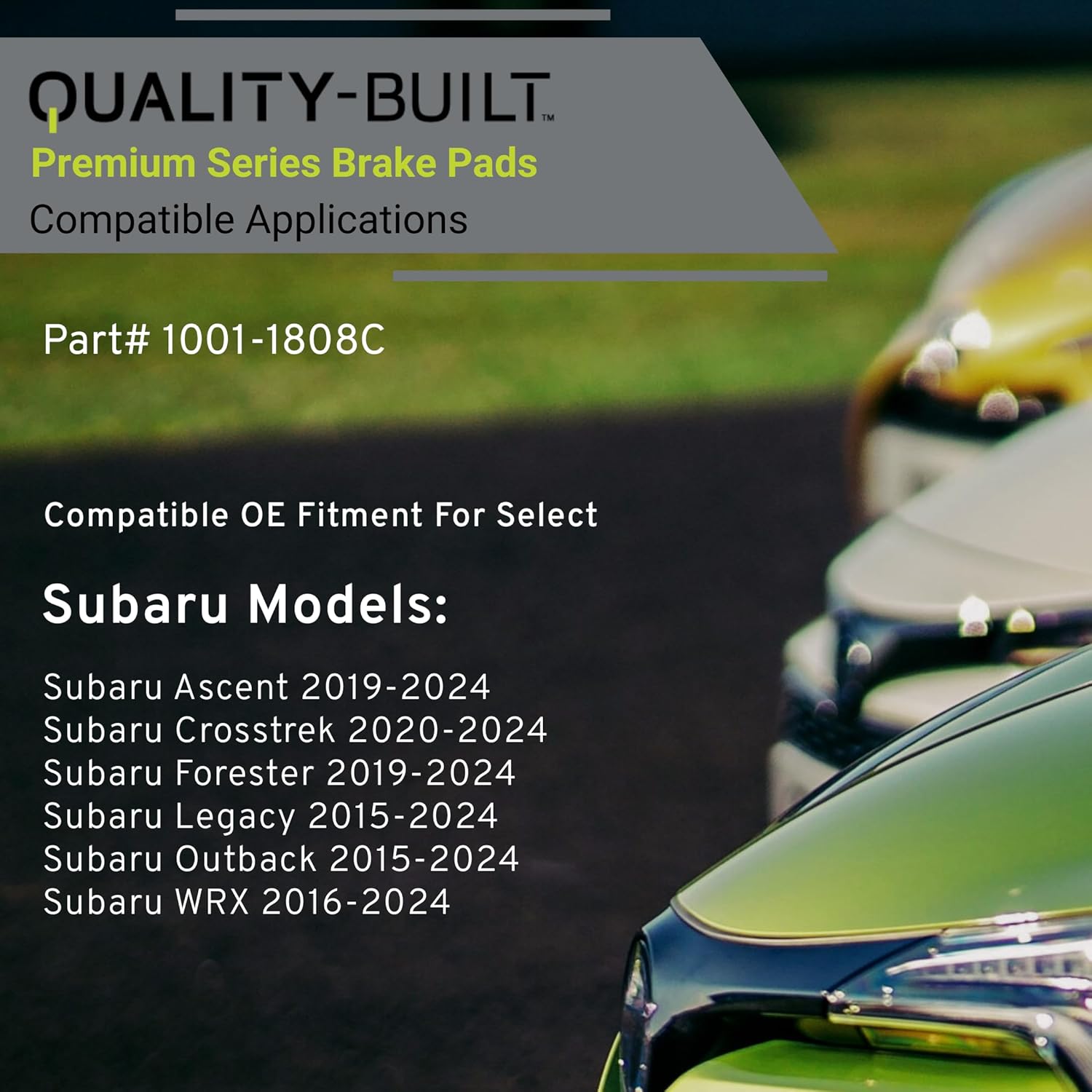 Premium Ceramic Rear Brake Pads (1001-1808C) Compatible with Subaru Ascent 2024-2019, Crosstrek 2024-2020, Forester 2024-2019, Legacy 2024-2015, Outback 2024-2015, WRX 2024-2016