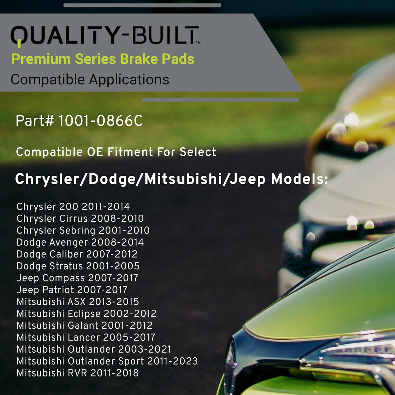 Premium Ceramic Front Brake Pads (1001-0866C) Compatible with 2001-2023 Chrysler/Dodge/Jeep/Mitsubishi (200/ASX/Avenger/Caliber/Cirrus/Compass/Eclipse/Galant/Lancer/Outlander & More)