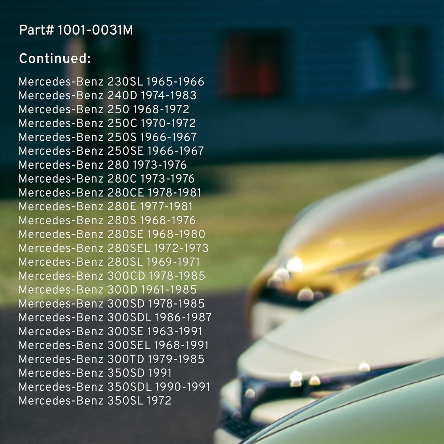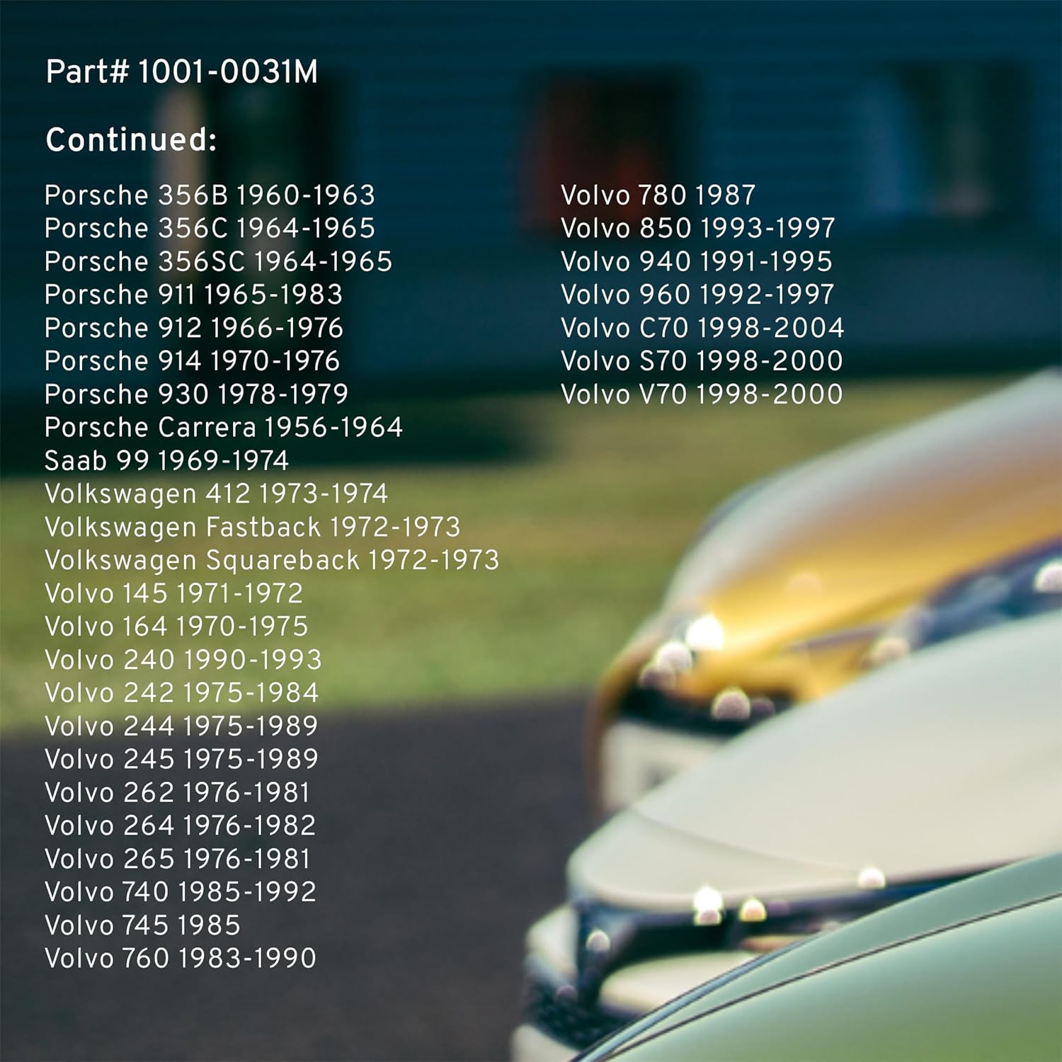 - FITMENT LIST: Select Models 1955-2004 PORSCHE/ ALFA-ROMEO/ VOLVO/ MERCEDES-BENZ/ MASERATI/ AUDI/ BMW/ OPEL/ SAAB/ VOLKSWAGEN (1001-0031M) Verify Fitment using AmazonConfirmedFit tool.