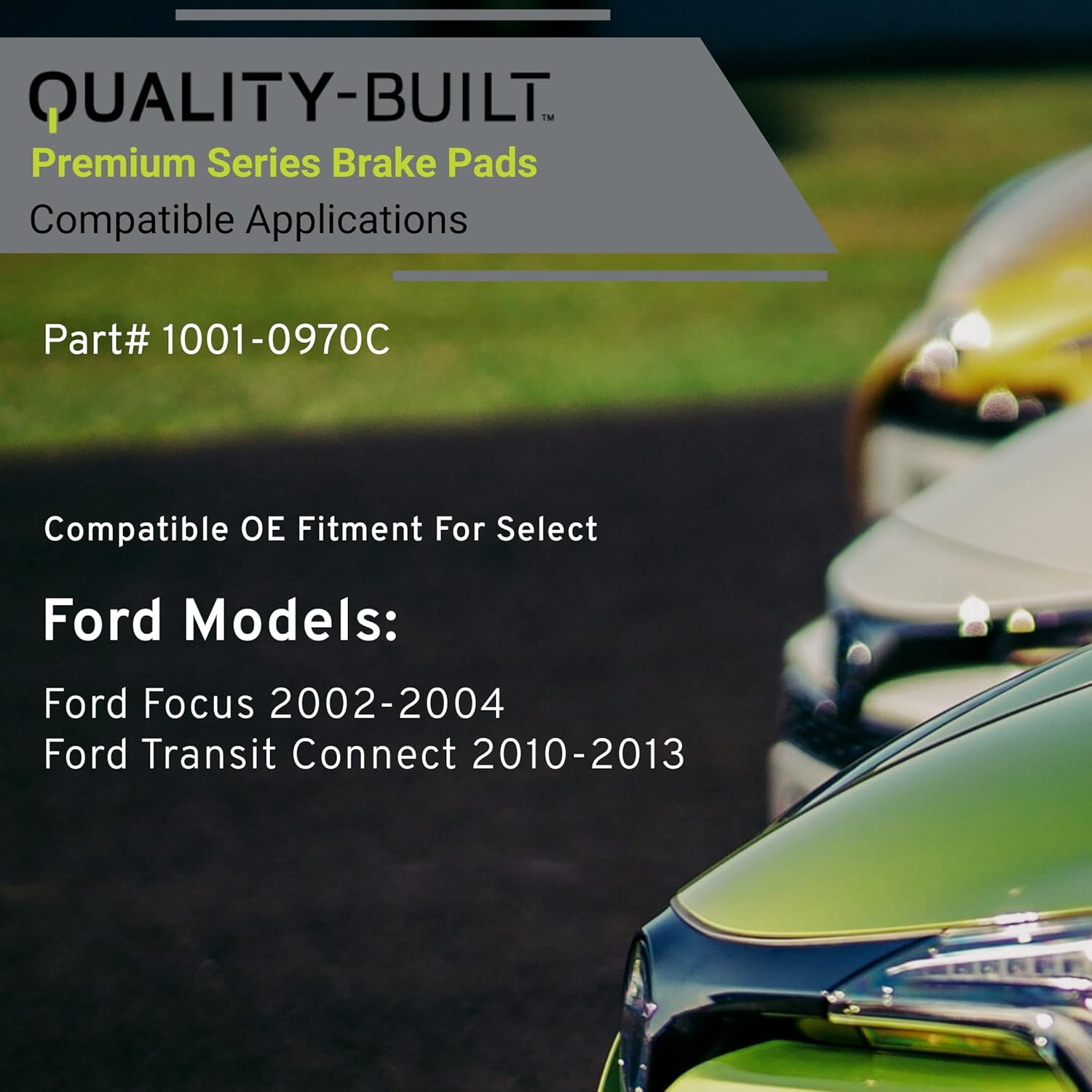 Premium Ceramic Front Brake Pads (1001-0970C) Compatible with Ford Focus 2002-2004, Ford Transit Connect 2010-2013