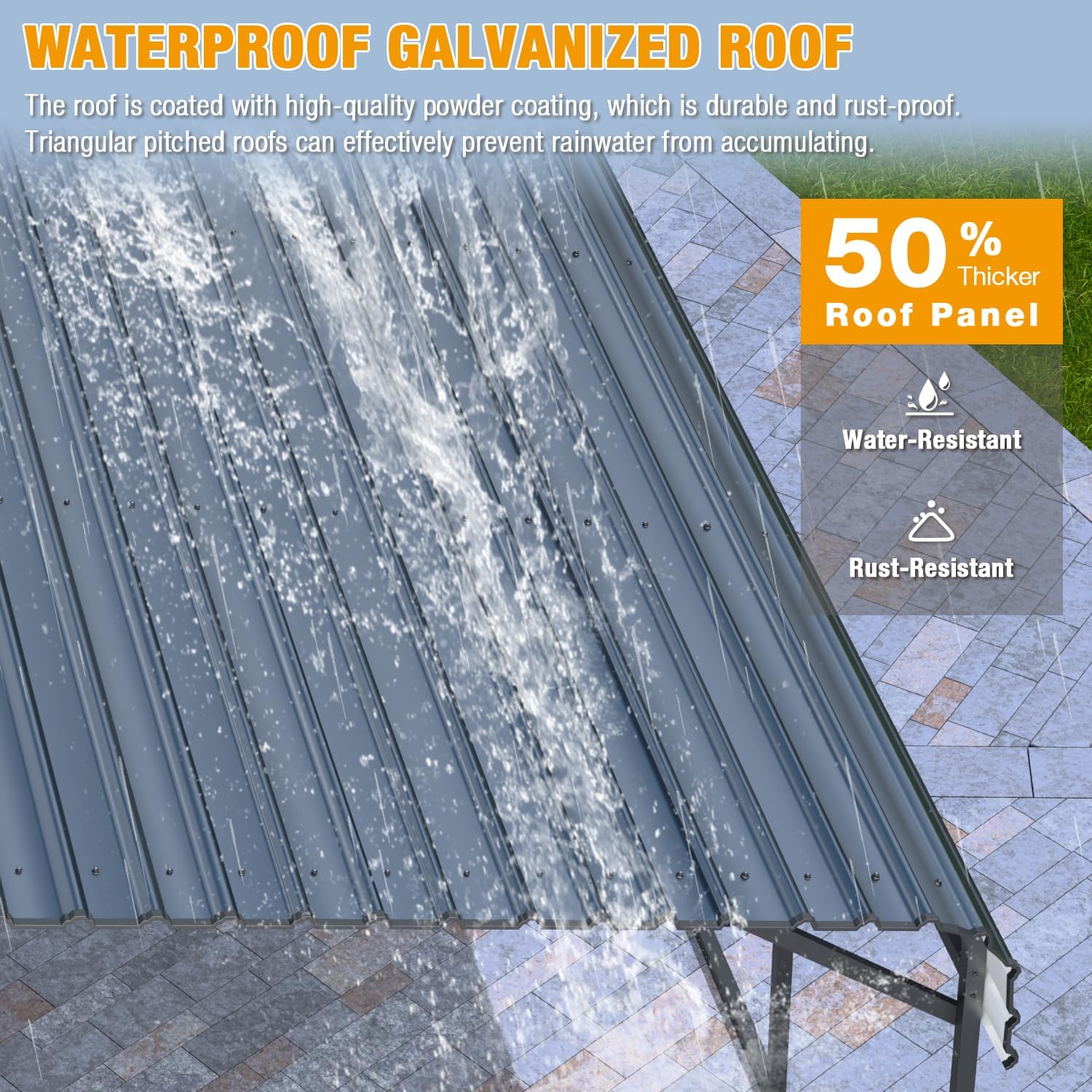- 【DIMENSIONS AND CUSTOMER SERVICE】The fully assembled large steel carport measures 234.25''Wx361.42''Dx115.75''H. If you have any questions, please contact us in time. We have been committed to providing you with smooth customer service and solving any questions for you around the clock to ensure a seamless and satisfactory experience from assembly to long-term use.