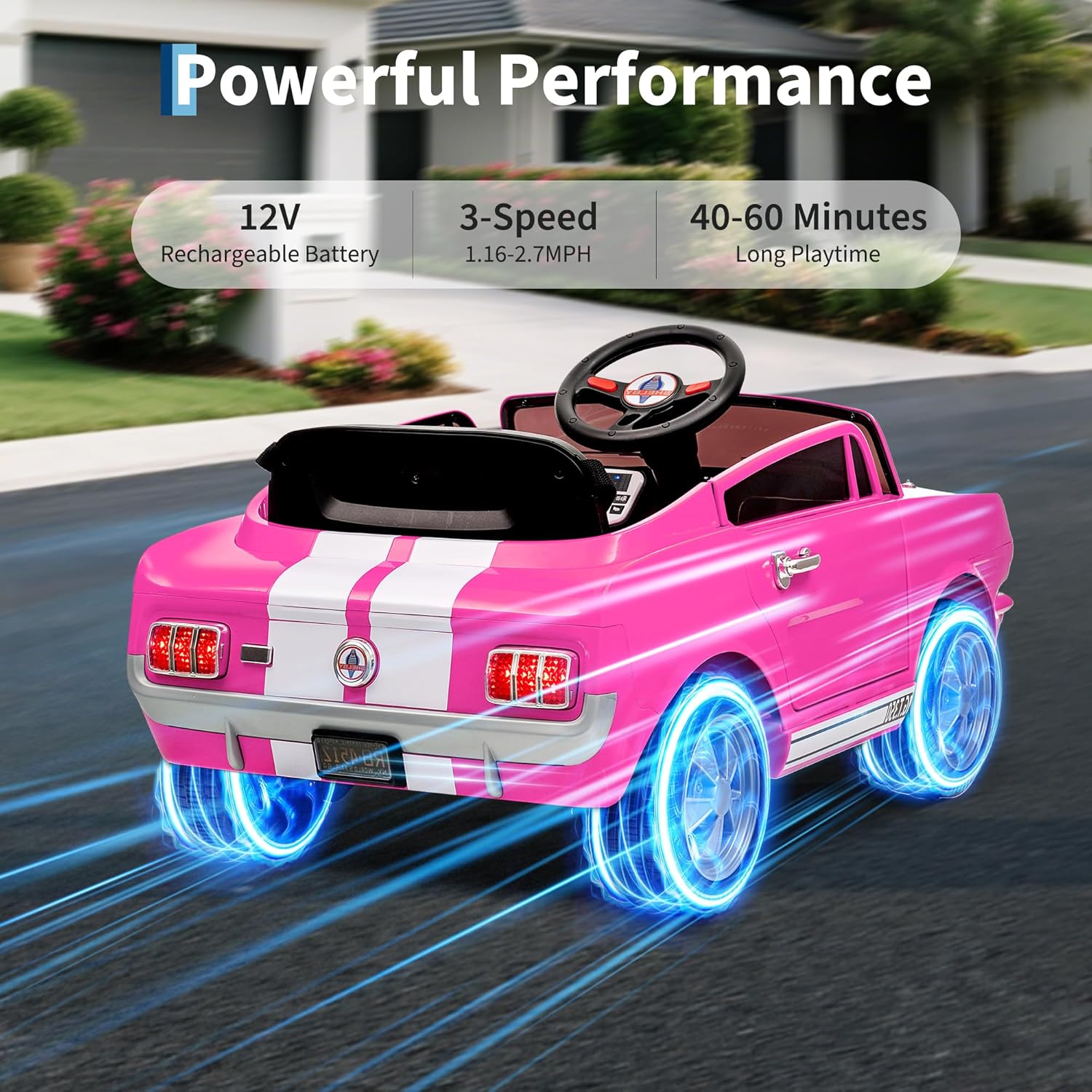 12V Ride on Car Licensed Shelby GT350, Battery Powered Ride On Toy for Toddlers with Remote Control, Electric Car for Kids, Bluetooth, Shock Absorbers, Safety Belt, 3 Speeds, LED Lights, Music, Pink