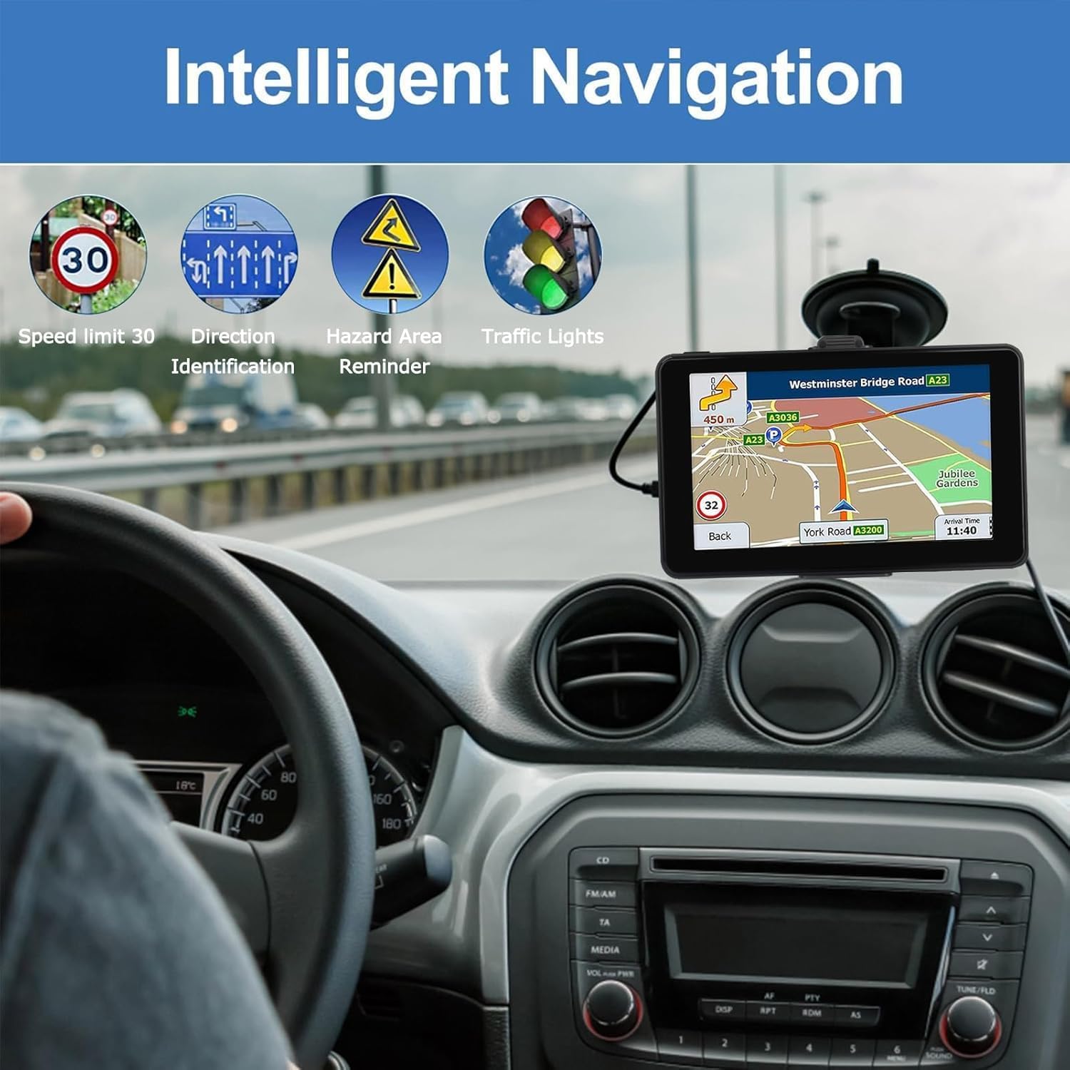 - ăSmart Voice Broadcast RemindeăGPS System With Turn-By-Turn Voice Navigation (Multi-Language Version), Comprehensive Voice Prompts, Prompt Real-Time Safety Navigation Direction Of Progress; Intelligent Error Correction, When we make a mistake, it quickly changes/calculates a new route. If driving on the highway, It will show a very clear direction/lane, how to leave the highway or change the lane to another highway, Without worrying about getting lost again.
