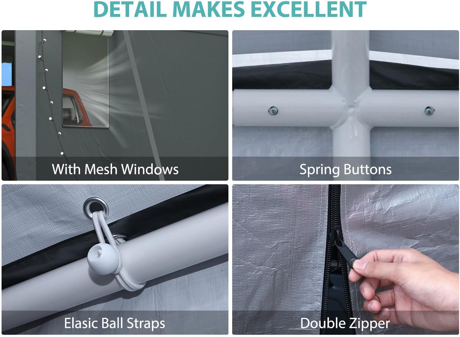 - 【Ventilated Design】: Featuring two mesh windows on each sidewall, this portable garage enhances airflow and reduces moisture, keeping your vehicle dry and protected.
