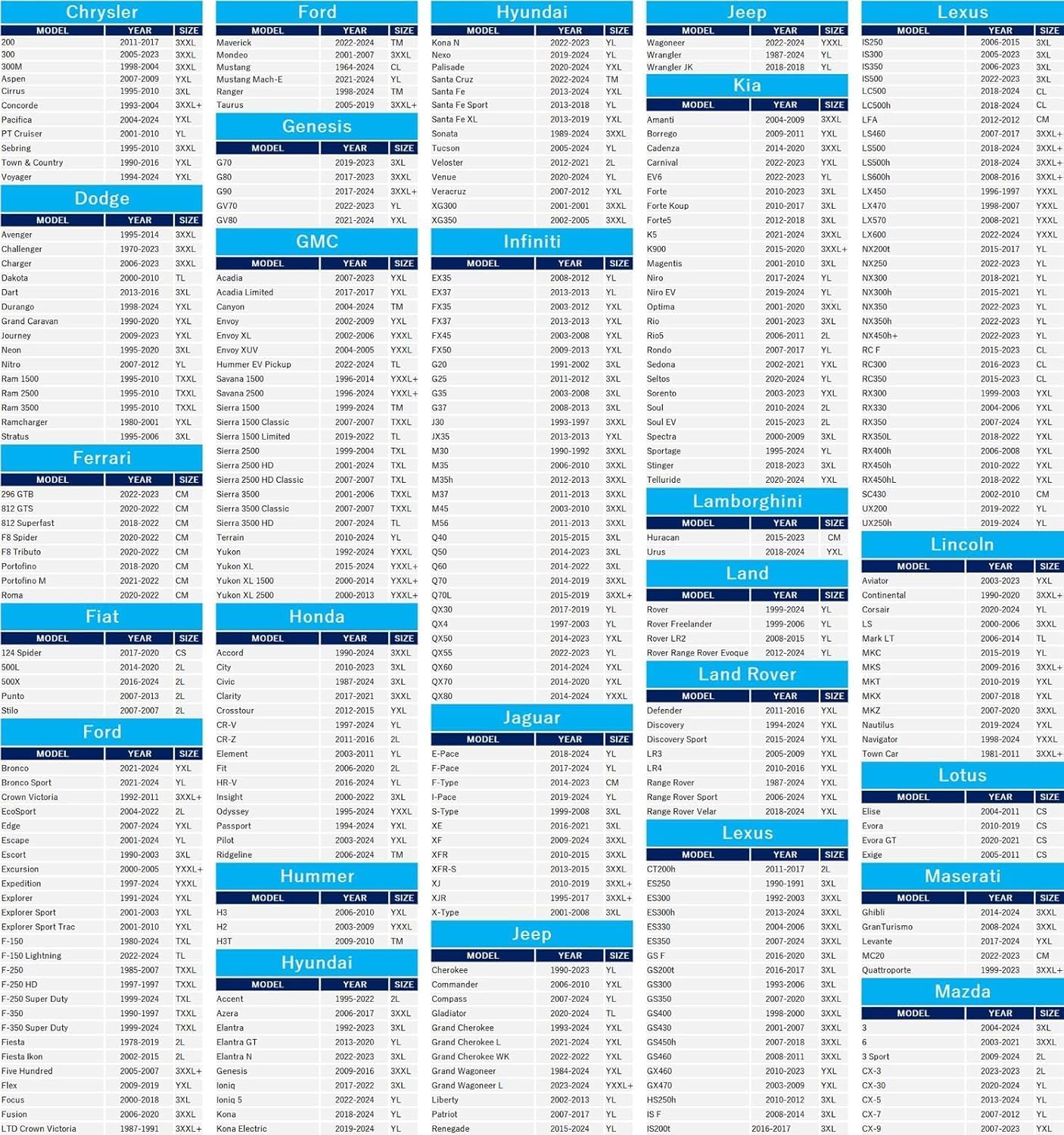 - Warm Reminder: Please check the car details before you order our cover; Date of manufacture; Car total length. NOTE: CL size without door zipper in the left or right of the cover.