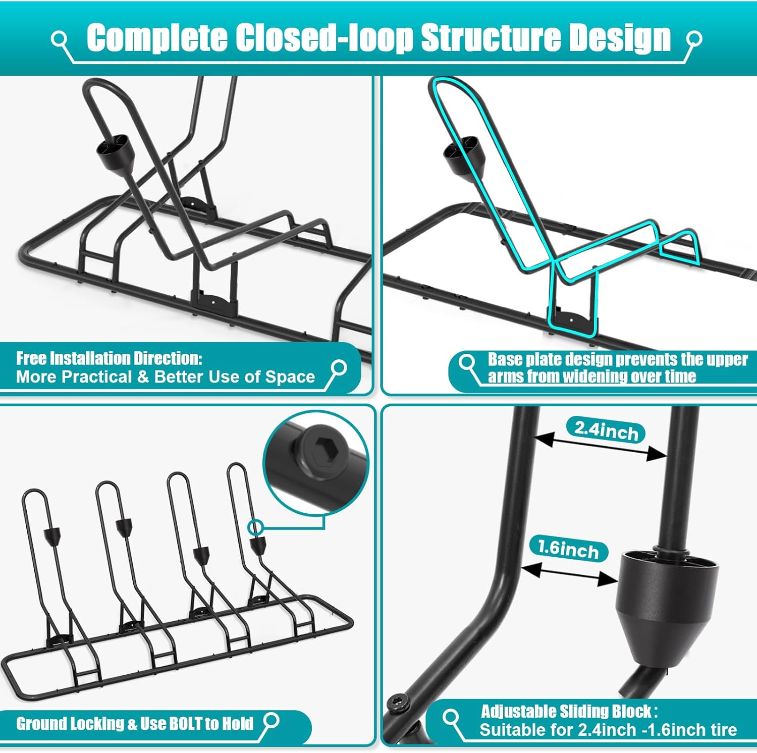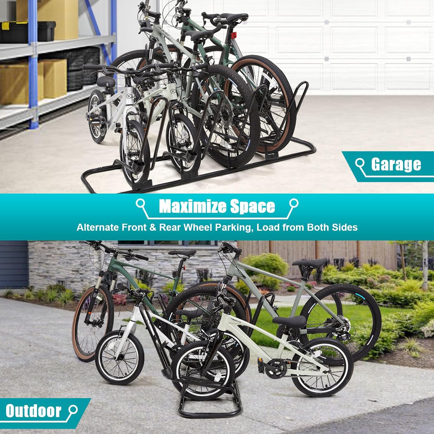 Floor Bike Rack for 4 Bikes, Bike Stand Anti-Collision Protects Disc Brake & Derailleur, Bicycle Holder Road/Kids/MTB Bicycles, Fits 12"-29" Tires, for Indoor Outdoor Garage