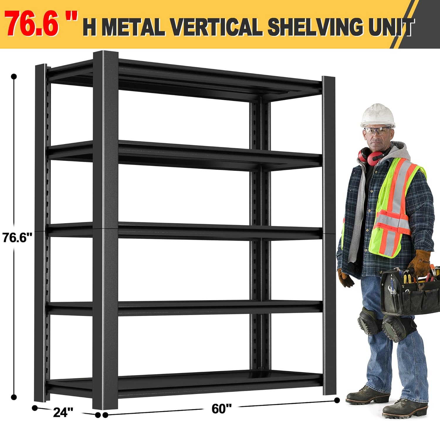 76" H x 60" W x 24" D 5-Tier Heavy Duty Garage Shelving Unit, 3000 LBS Capacity Metal Storage Rack,Adjustable Steel Shelves for Garage, Warehouse, Basement, Pantry, Workshop.4 Pack