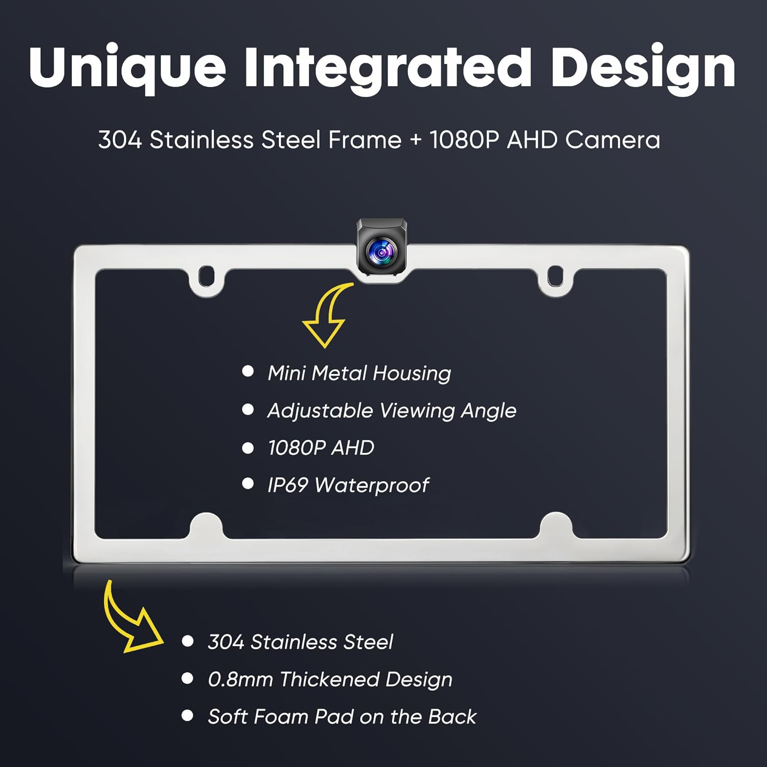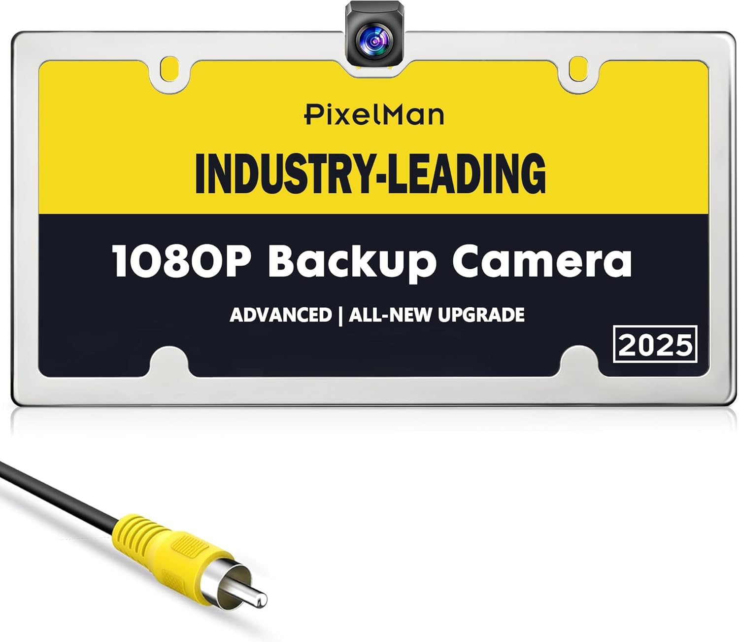 PixelMan Backup Camera,XS-2 1080P AHD Innovative One-Piece License Plate Back Up Camera Ultra Clear Night Vision 170° Wide Angle Vehicle Rear View Reverse Camera,All-Weather Durable Metal Housing