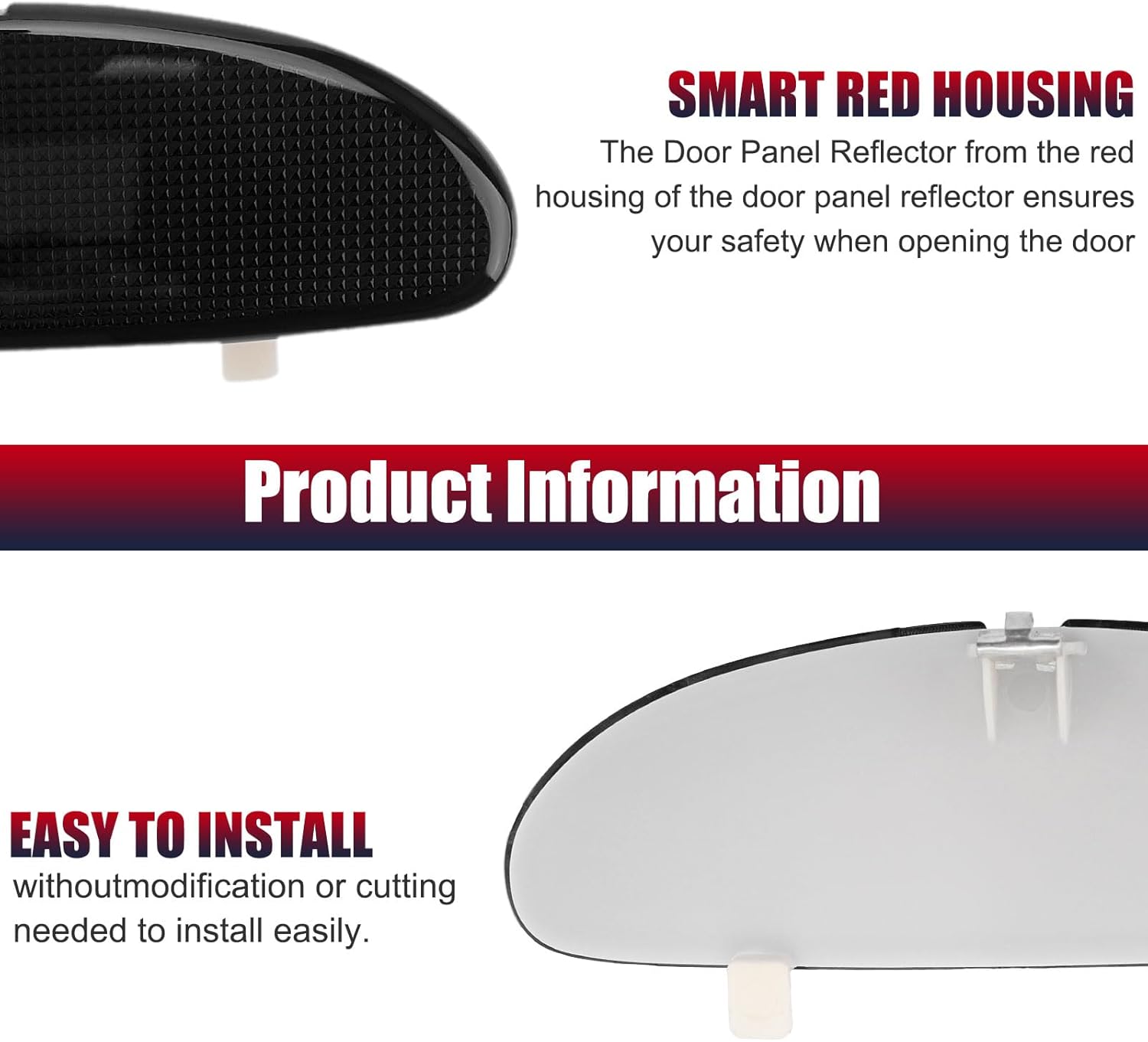 - Package Includes: 1pcs black interior front door reflectors included. Please confirm whether your model and part number are compatible before purchasing