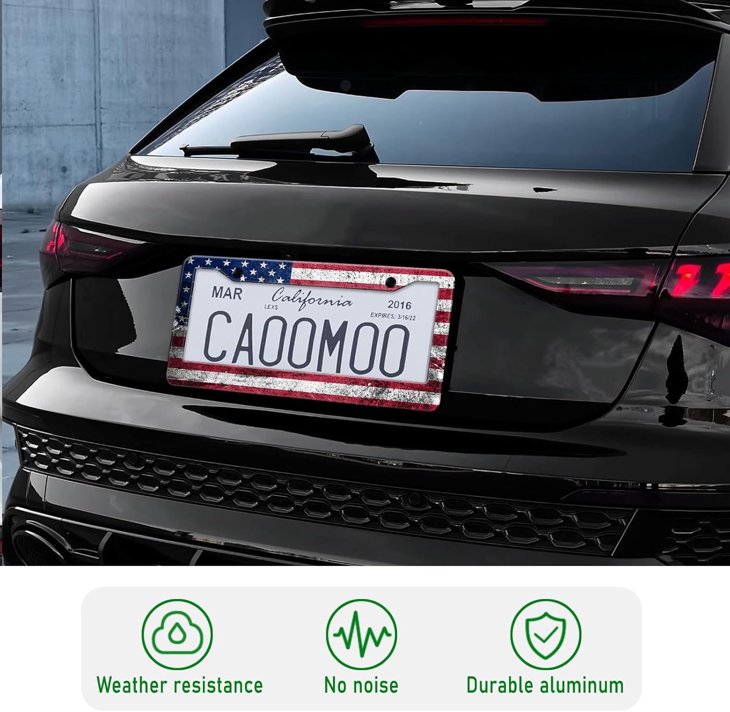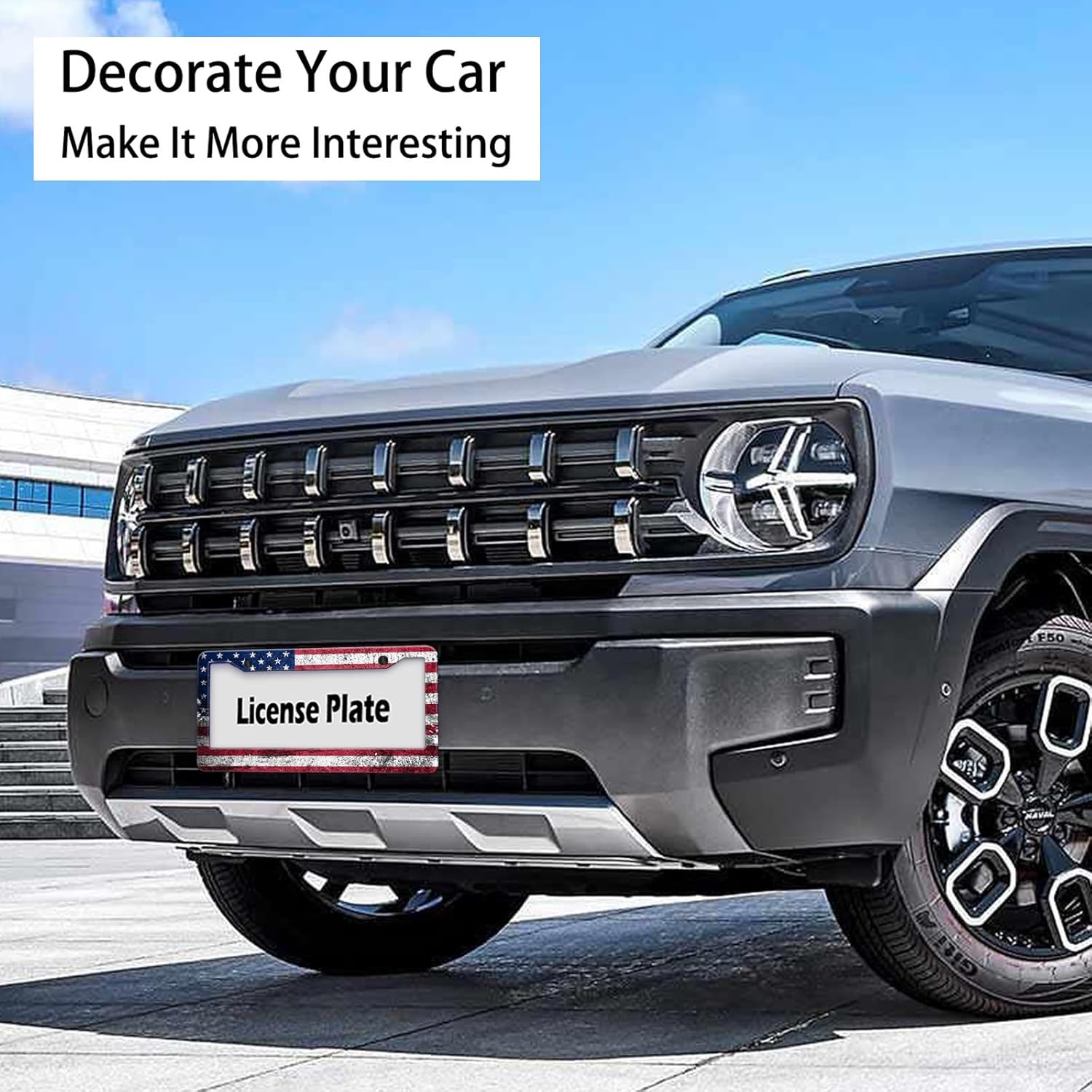 Vintage American Flag License Plate Frame, Retro USA Flag License Plate Holder Covers, Metal Aluminum Rustproof License Plate Frame Car Accessories for Women Men 2 Holes with Screw Caps
