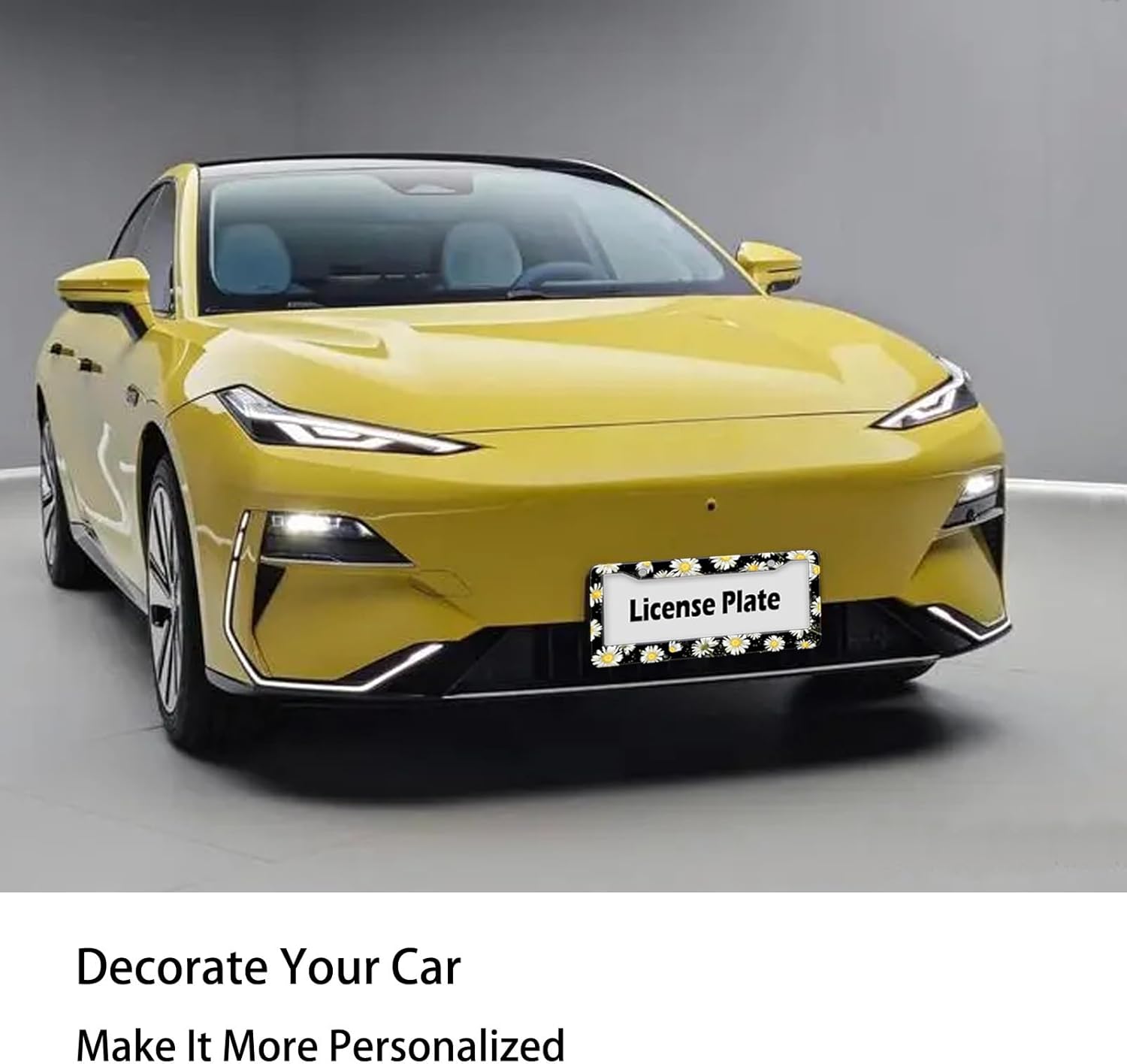 Daisy Flowers Car License Plate Frame, Flowers Print Tags Frames Holder Covers, Metal Aluminum Rustproof Car Accessories US Canada Standard with Screws for Women Men 6x12 Inch 2 Holes