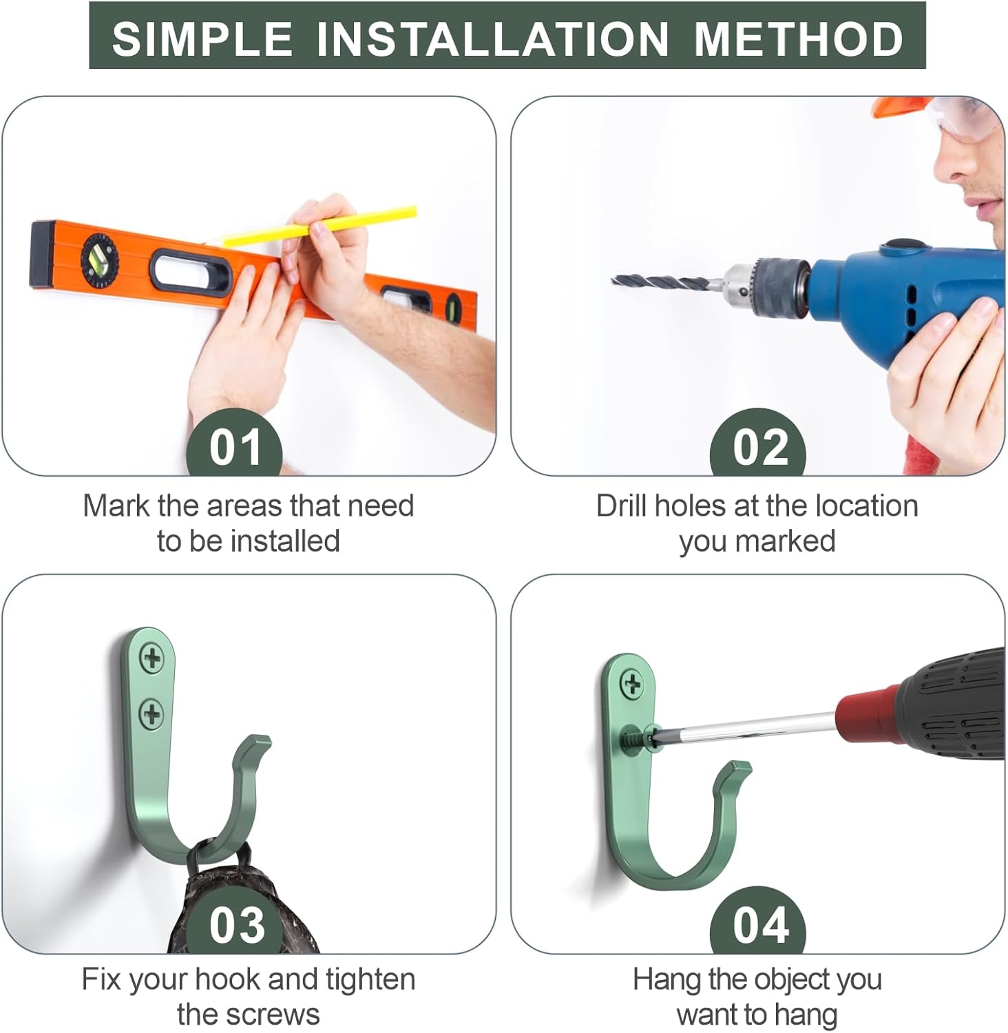- Quality Upgrade: For the problem of deformation of wall hooks, we have upgraded the material, increased the iron content, so that the quality and hardness of wall hooks and screws are greatly enhanced, it has the function of anti-corrosion and anti-rust, making them strong and durable