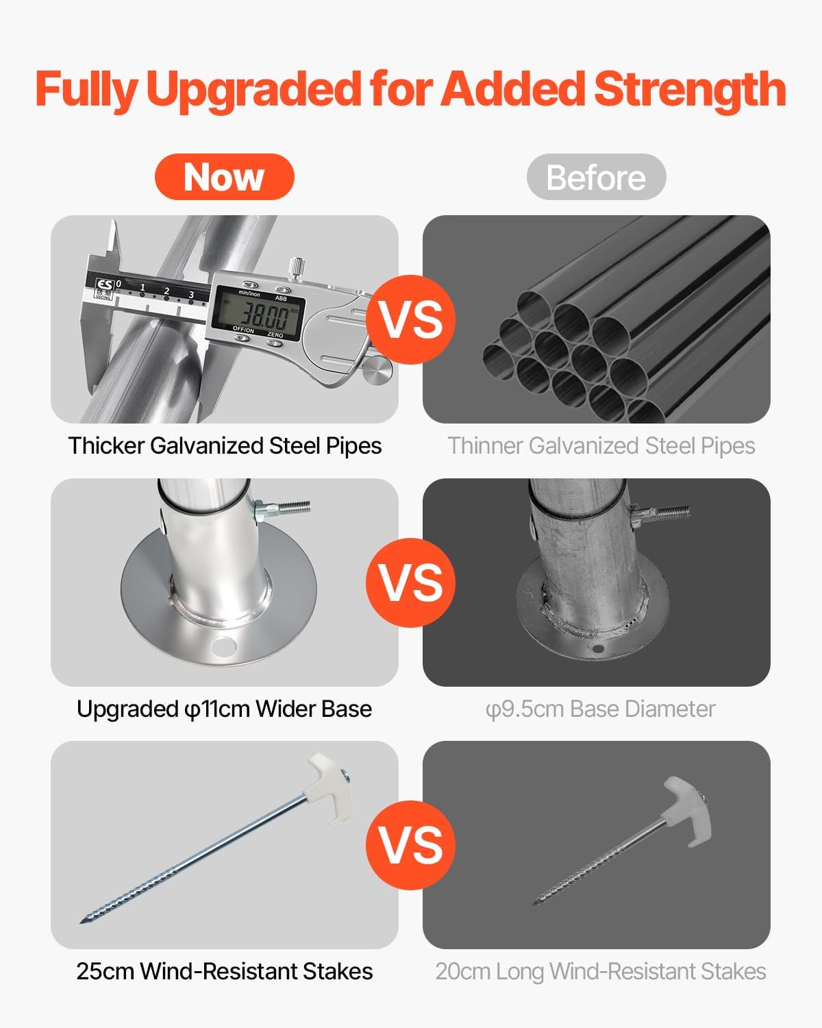 - Heavy-Duty Metal Frame: This large 8x14 ft portable storage shed is built with galvanized steel pipes, with a pipe diameter of 38mm and wall thickness up to 0.7mm. This makes it resistant to cracking, peeling, rusting, and corrosion, ensuring stability and security even in harsh weather conditions.