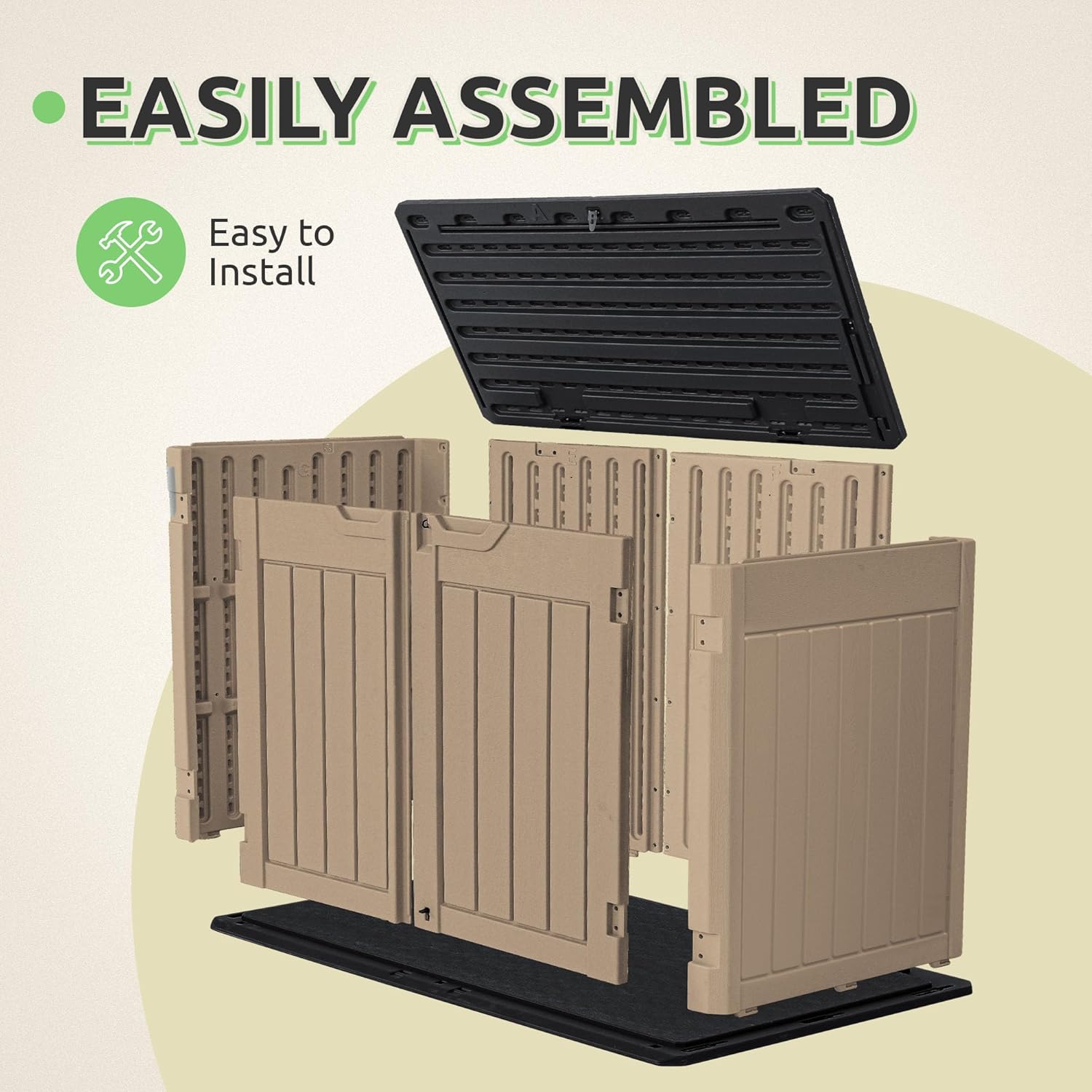 - Quick Setup and Separate Shipment: Measuring 53.2''L x 33.2''W x 46.3''H exterior, and 50.8''L x 29.9''W x 44.5''H interior, this resin plastic shed comes with clear instructions for a 20-minute easy assembly.