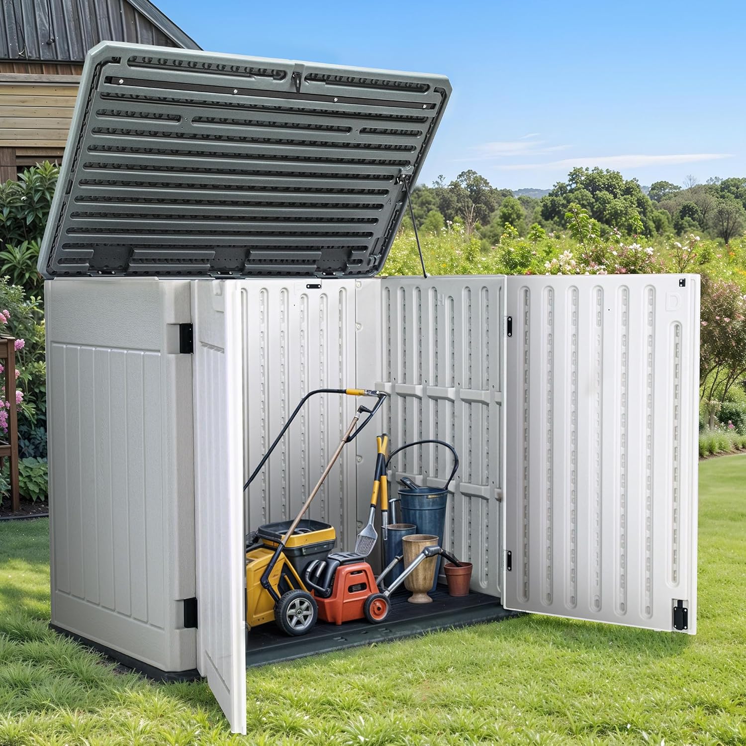 - Enhanced Strength with Dual Walls: The horizontal outdoor storage features robust double-wall panels, engineered for enhanced wind and impact resistance, providing a reliable outside garbage tool storage shed that won't bend or puncture