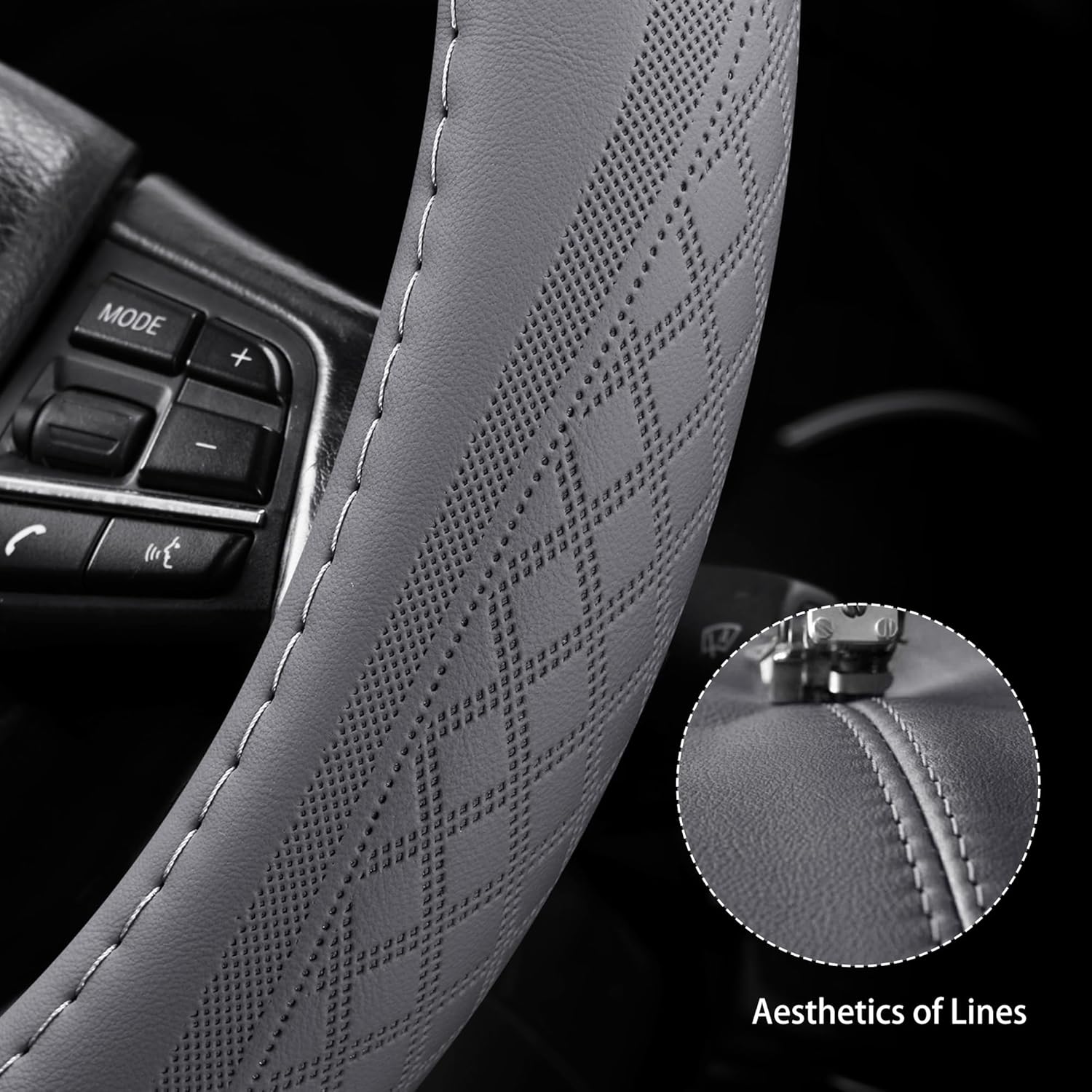 【2025 Model】 Breathable Soft Leather Car Steering Wheel Cover for Men Women, Non-Slip, Comfortable,Universal 15 inches Steering Wheels, Grey