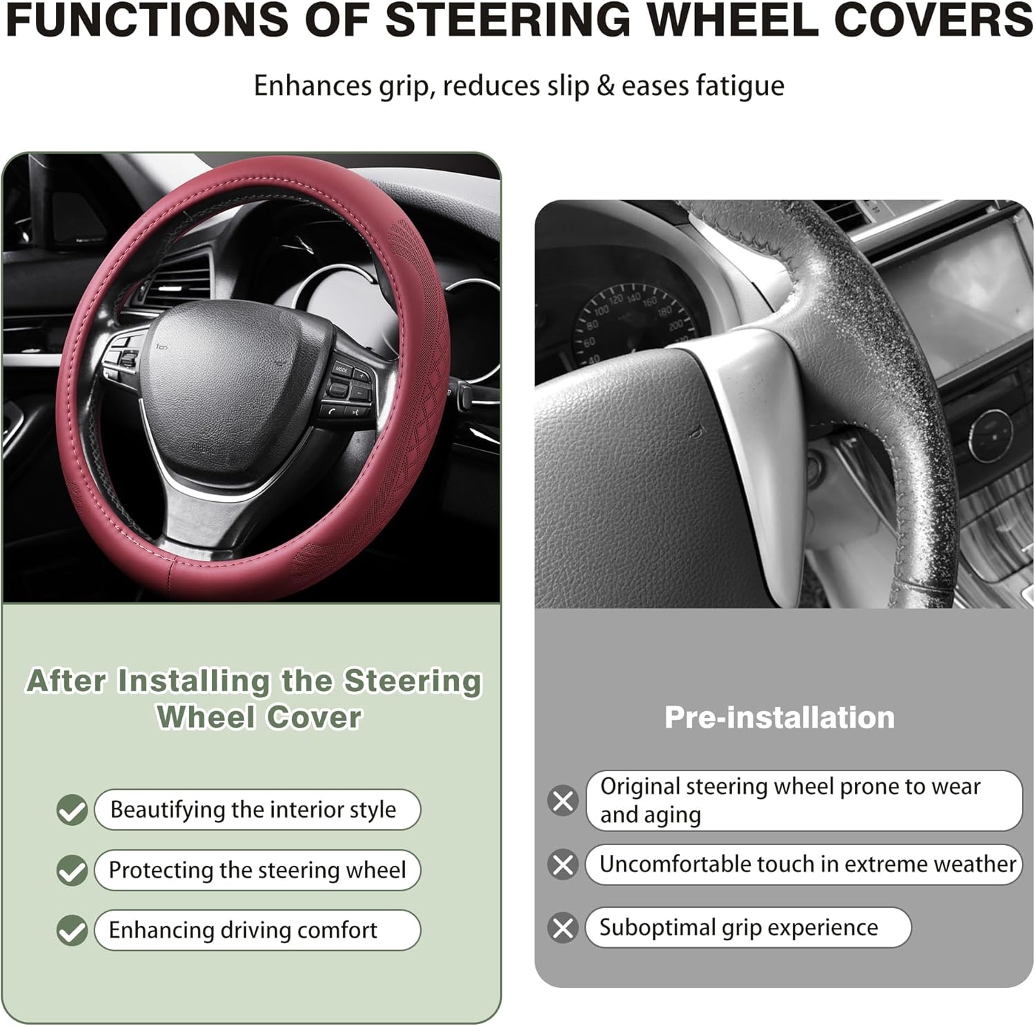 - 【Suitable Size】: Enhance the appearance and feel of your car's interior with our leather steering wheel cover.This steering wheel cover is designed to universally fit wheels ranging from 14.5 to 15 inches.Please measure the size of the steering wheel before purchasing.