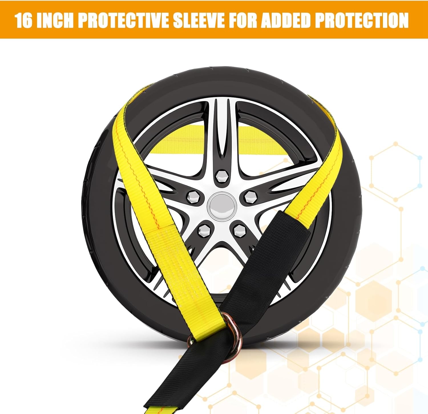 - Sturdy Construction: made from reliable materials, these lasso wheel lift straps have a combination of strong polyester and steel; This reliable construction not only brings the durability of the straps but also provides a breaking strength of massive 11, 000 lbs and a working load limit of 3, 333 lbs; With our carefully constructed straps, you can tow with confidence