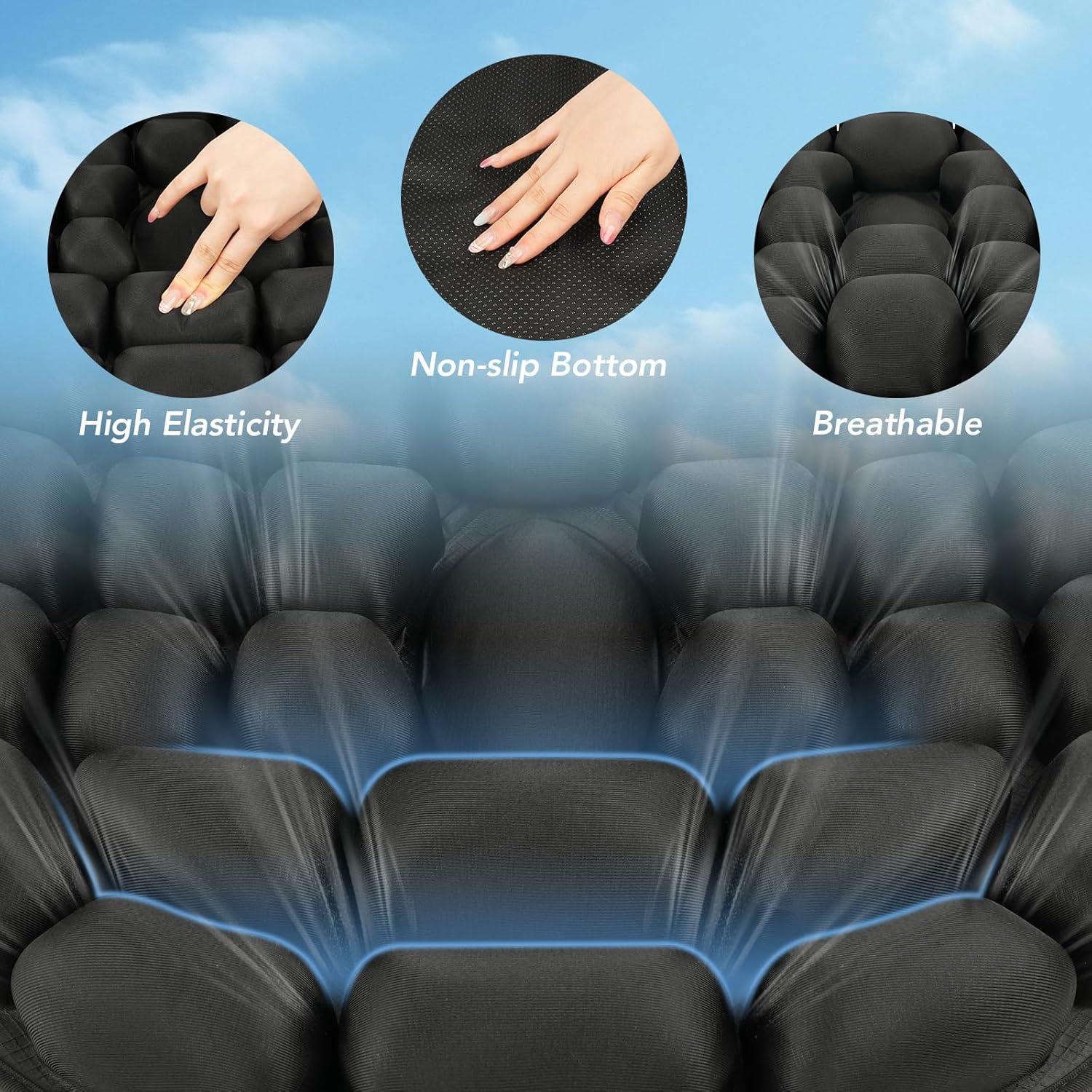 - Bionic Honeycomb Pressure Relief: This 3D inflatable seat cushion equipped with 34 ergonomic airbags dynamically conform to your body, targeting the ischial bones and coccyx to disperse pressure by up to 73%. Patented spinal alignment technology transforms hard seats (even economy-class) into sofa-like comfort—ideal for office workers, travelers, and lumbar recovery