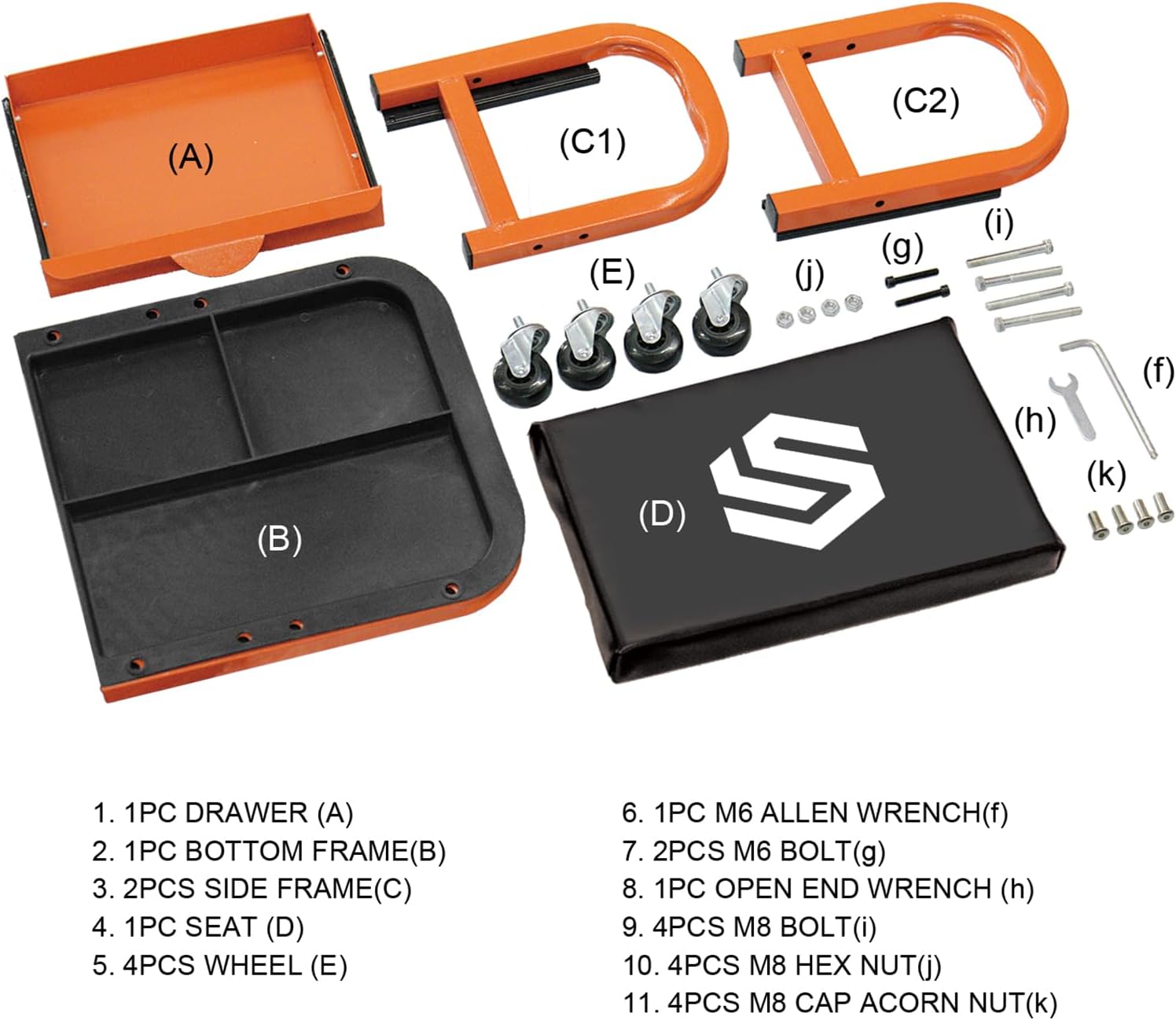 SEKAM Rolling Creeper Garage/Shop Seat, 250 LBS Capacity Padded Rolling Workshop Stool with Tool Tray Storage, Mechanic Stool for Garage, Shop, Auto Repair, Orange
