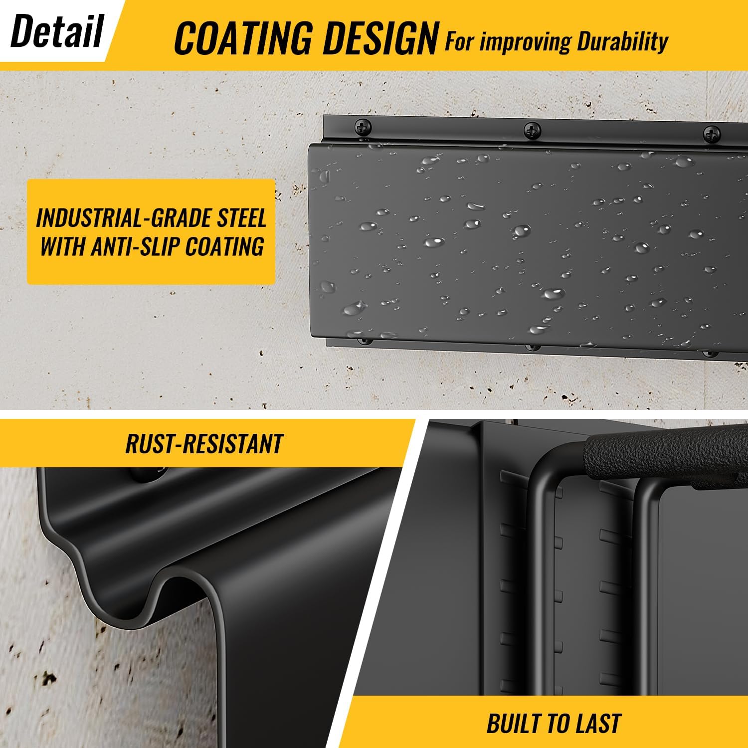 - 【Heavy-Duty Garage Tool Rack – 64" Rail, Holds Up to 720 lbs】Built with reinforced steel, this garage tool rack features a 64-inch wall-mounted rail and is designed to securely hold shovels, rakes, and other heavy garden tools. Perfect for any garage or garden shed.