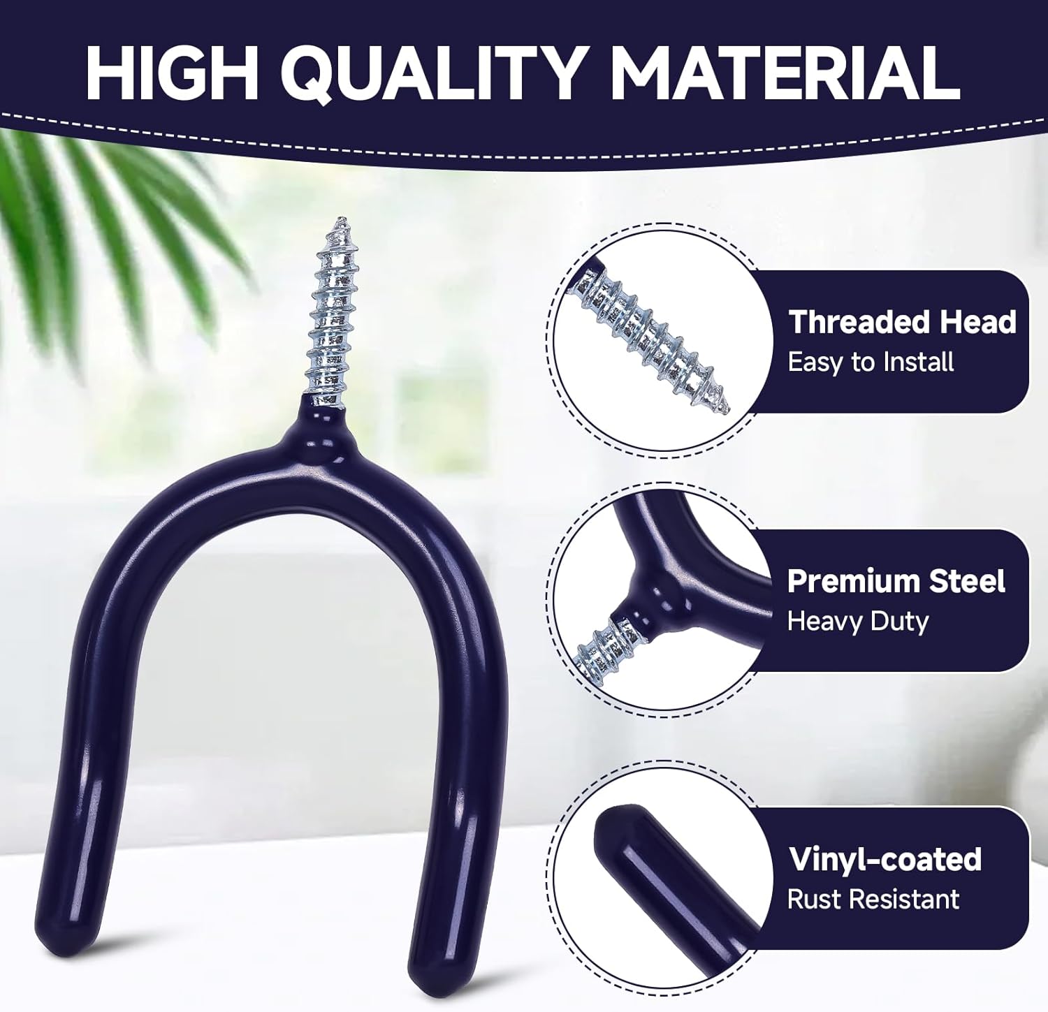 12 Pack Garage Storage System Steel U Hooks with Anti-Slip Coating Home Improvement and Organization Screw in Hooks Easy Wall Mounting Heavy Duty Bike and Ladder (Blue, 12 Pack)