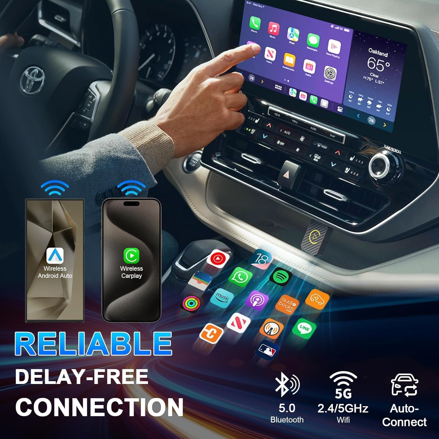 - â¨ăEasy to Set up & Auto ReconnectionăThe Wireless Carplay and Android Auto Car Adapter is the perfect accessory to enhance the driving experience. Simple plug-and-play setup ensures seamless connectivity between your car and smartphone. After the initial setup, the wireless apple carplay automatically connects to your phone every time you start your car, making it easy to recognize your phone even if it's in your pocket or backpack.