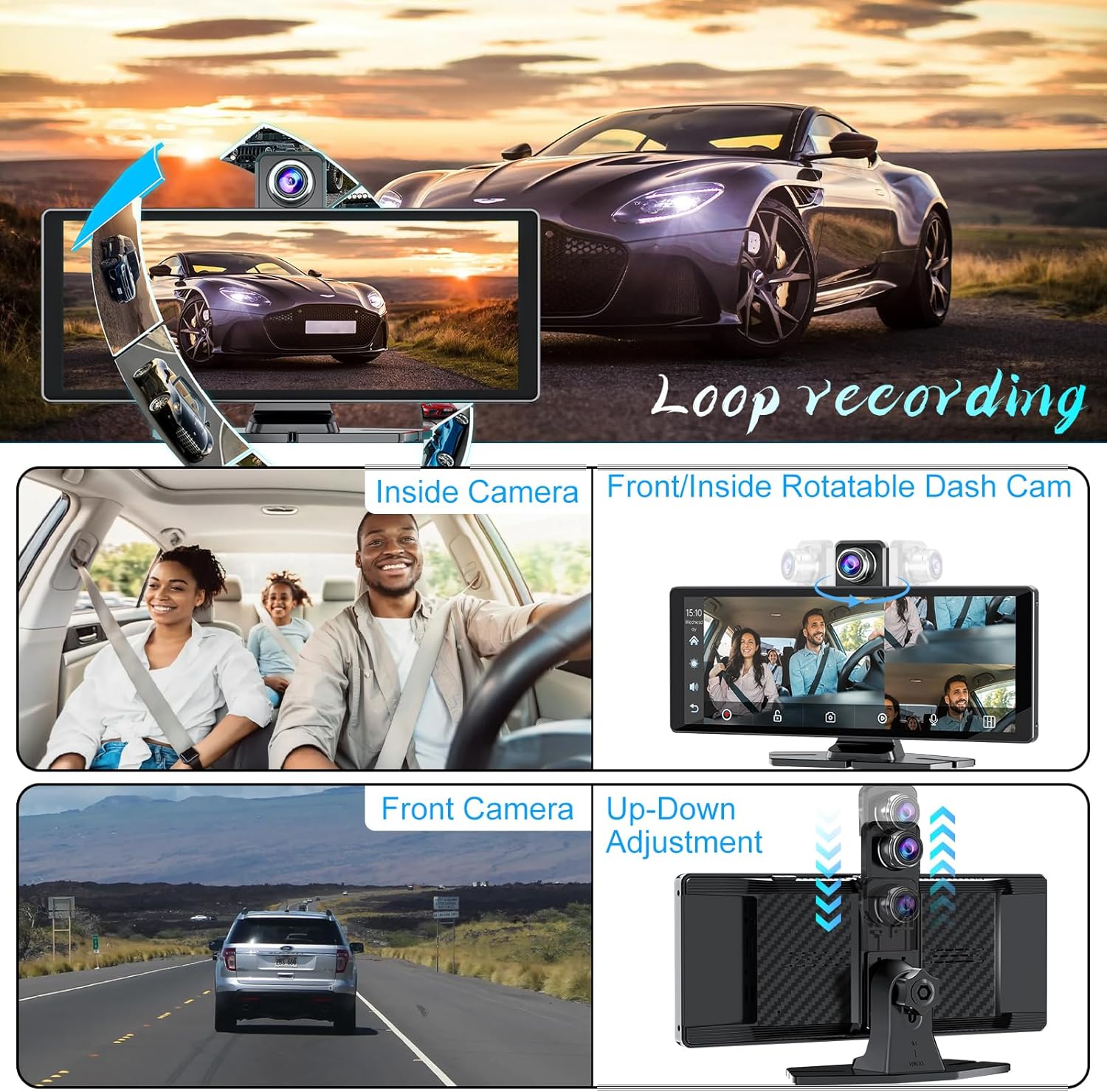 Carplay Screen for Car,10.26" HD Car Stereo for Apple Carplay & Android Auto -with Rotatable 4K Dash Cam & HD Backup Camera, Dual Front/Inside Recording, GPS Navigator for Cars,Trucks