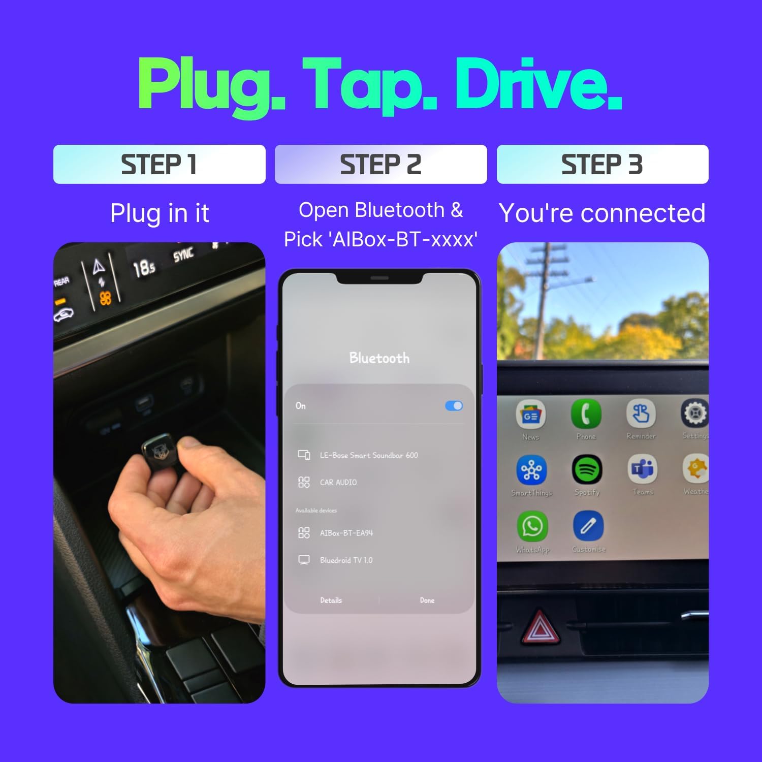 - Auto-Reconnect Every Time : Remembers your device after the first setup. Just start your car and go – no need to pair again.