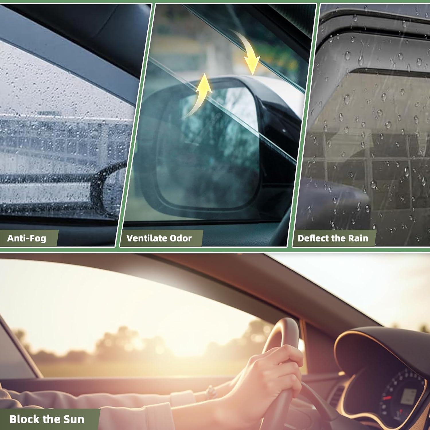 - ăImproved Ventilation and Air FlowăAllows fresh air to circulate through open windows while keeping the rain out or reduces heat. Reduce mirror and window fogging; reduce sun glare through side window. Dark Smoke translucent color will not obstruct the driver's view while driving
