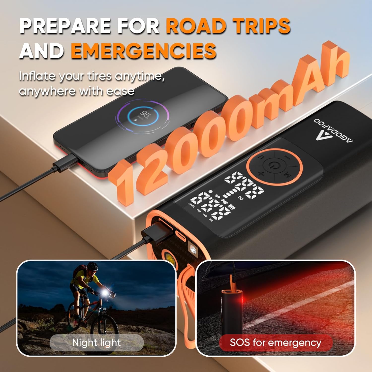 Tire Inflator Portable Air Compressor, 4X Faster 150 PSI Inflation Air Pump for Car Tires, 12000mAh Cordless Bike Pump with Pressure Gauge, Auto Shut-Off Pump for Car, SUV, Motorcycle, Bike, Balls