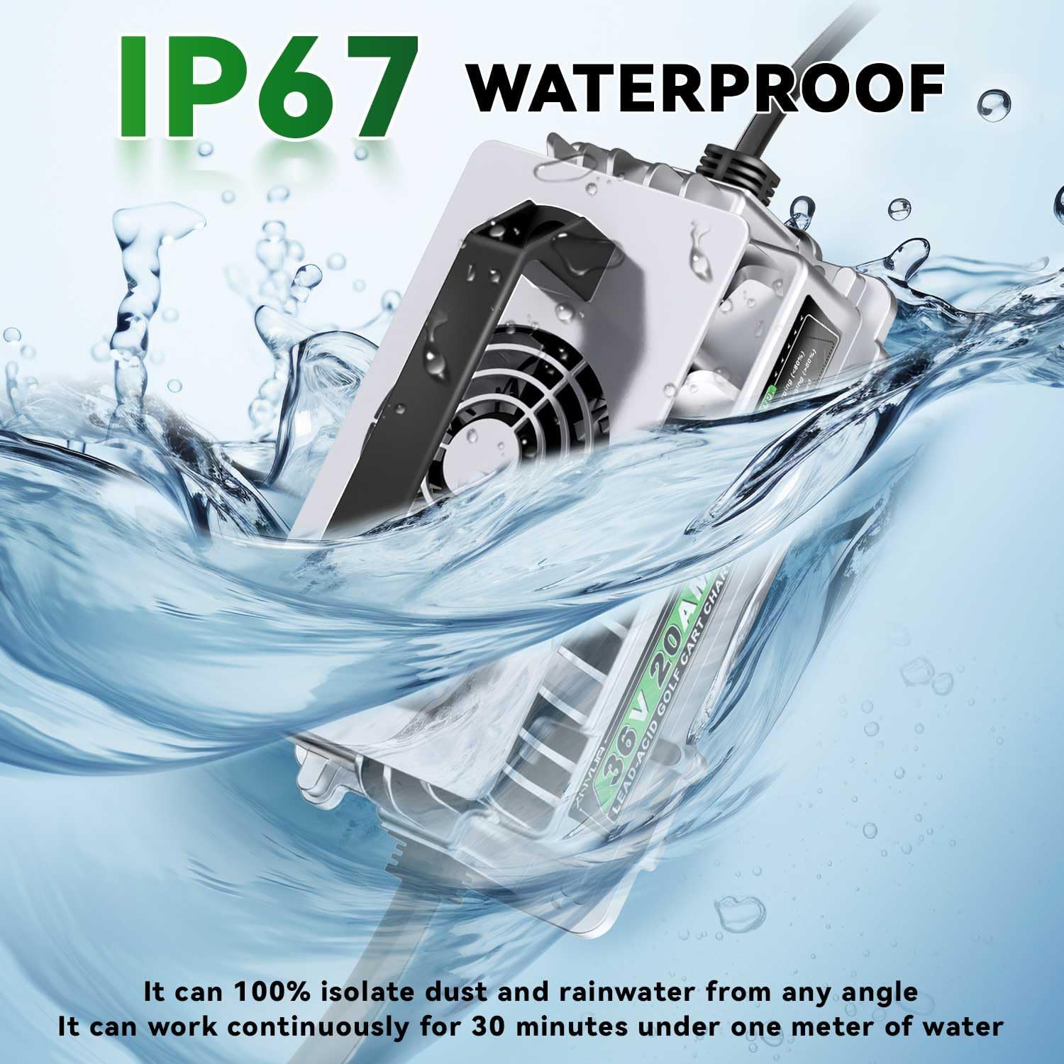 - 【Vortex Heat Dissipation Design】The 36 volt ezgo golf cart battery charger comes with a cooling fan and is designed with a vortex around it, which greatly increases the cooling efficiency and enables it to work stably.