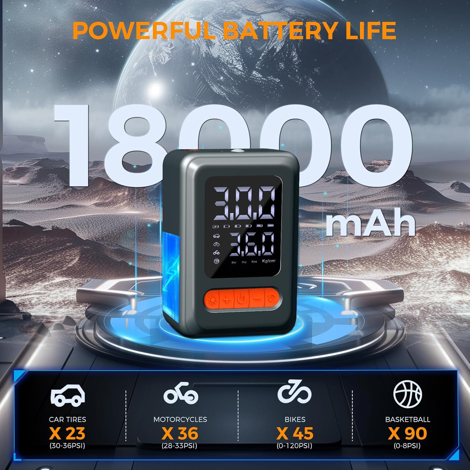 - EASY TO USE & AUTO SHUT-OFF: With 4 preset inflation modes and a custom mode, the Powools car air pump is easy to use even for a new beginner. The large digital display helps you read the tire pressure just at a glance. Besides, the auto shut-off function ensures the inflator stops once the preset pressure is reached, preventing over-inflation and delivering precise results every time. Just set it and let it do the work!