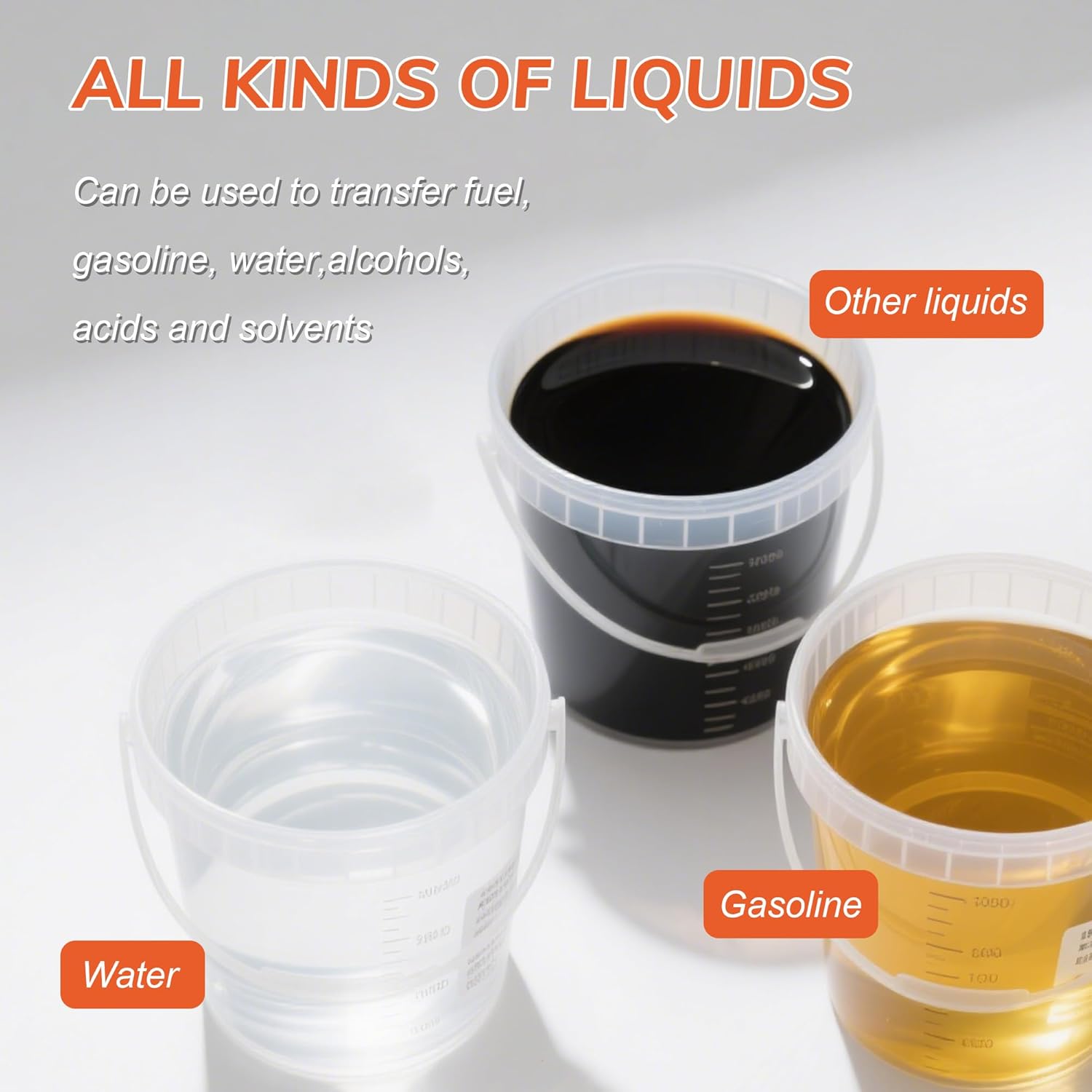 - Versatile Liquid Compatibility: Our gas siphon pump for gasoline is engineered to safely transfer various fuels like gasoline, diesel, kerosene, and light oils, this gas can pump is ideal for a wide range of applications—from auto maintenance to boating and agricultural tasks