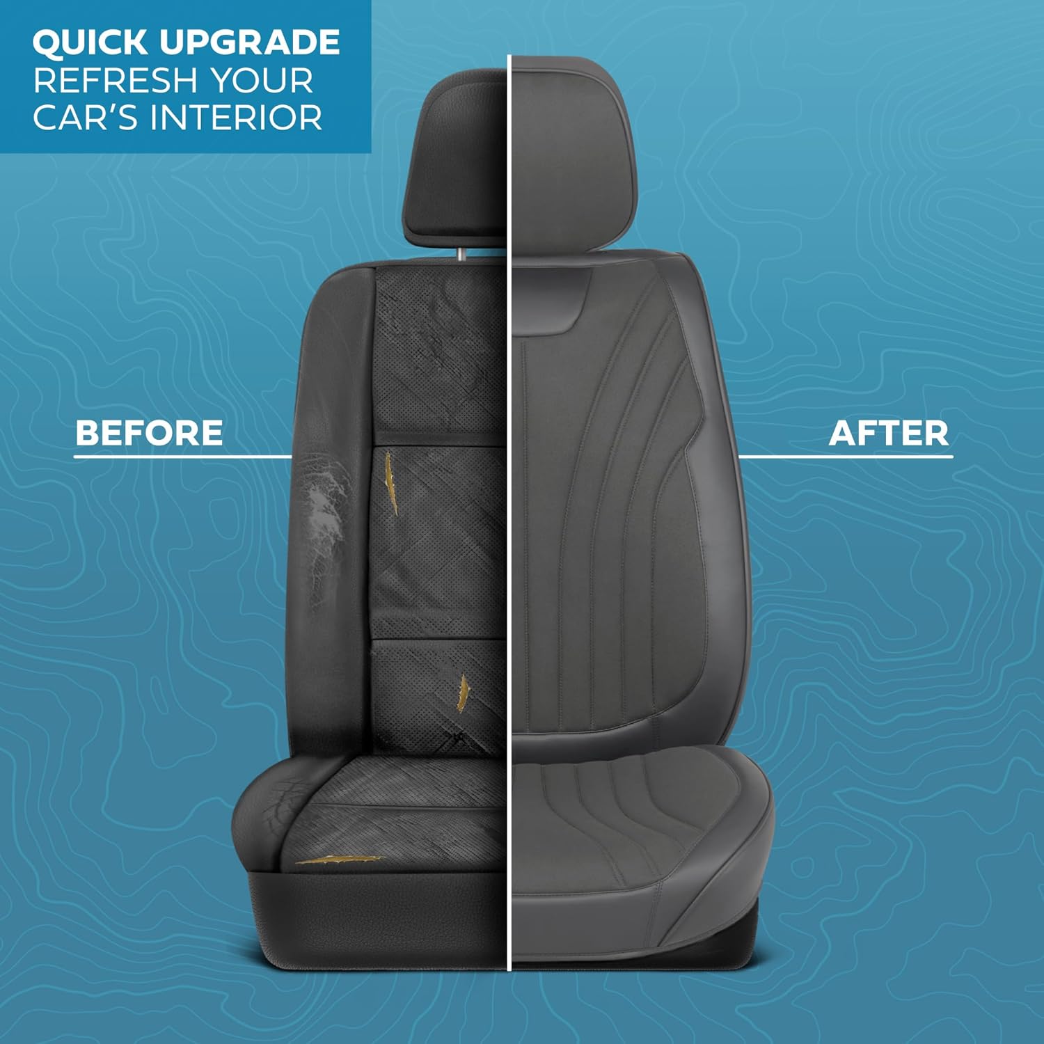 - SMART LUXURY: Why spend $350–$750 per seat on reupholstery? MotorBox Elite Edition seat covers bring affordable elegance to any vehicle. Enjoy a durable, upscale look and feel at a fraction of the cost. Perfect for refreshing an old car or personalizing a new one, these universal fit front covers are easy to install and come with a 1-year warranty for peace of mind.