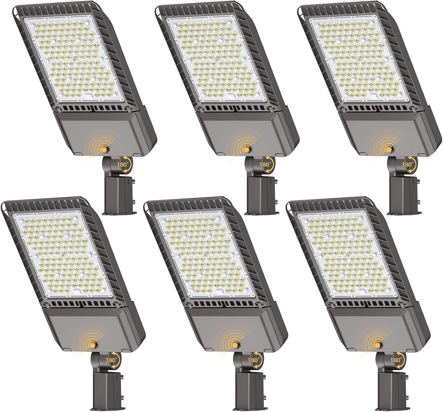 340W LED Parking lot Lights Commercial Oudoor Lighting Street Light with Dusk to Dawn Photocell 61200LM 6000K IP65 Waterproof 100-277V for Driverway Parking Lot 6 Pack