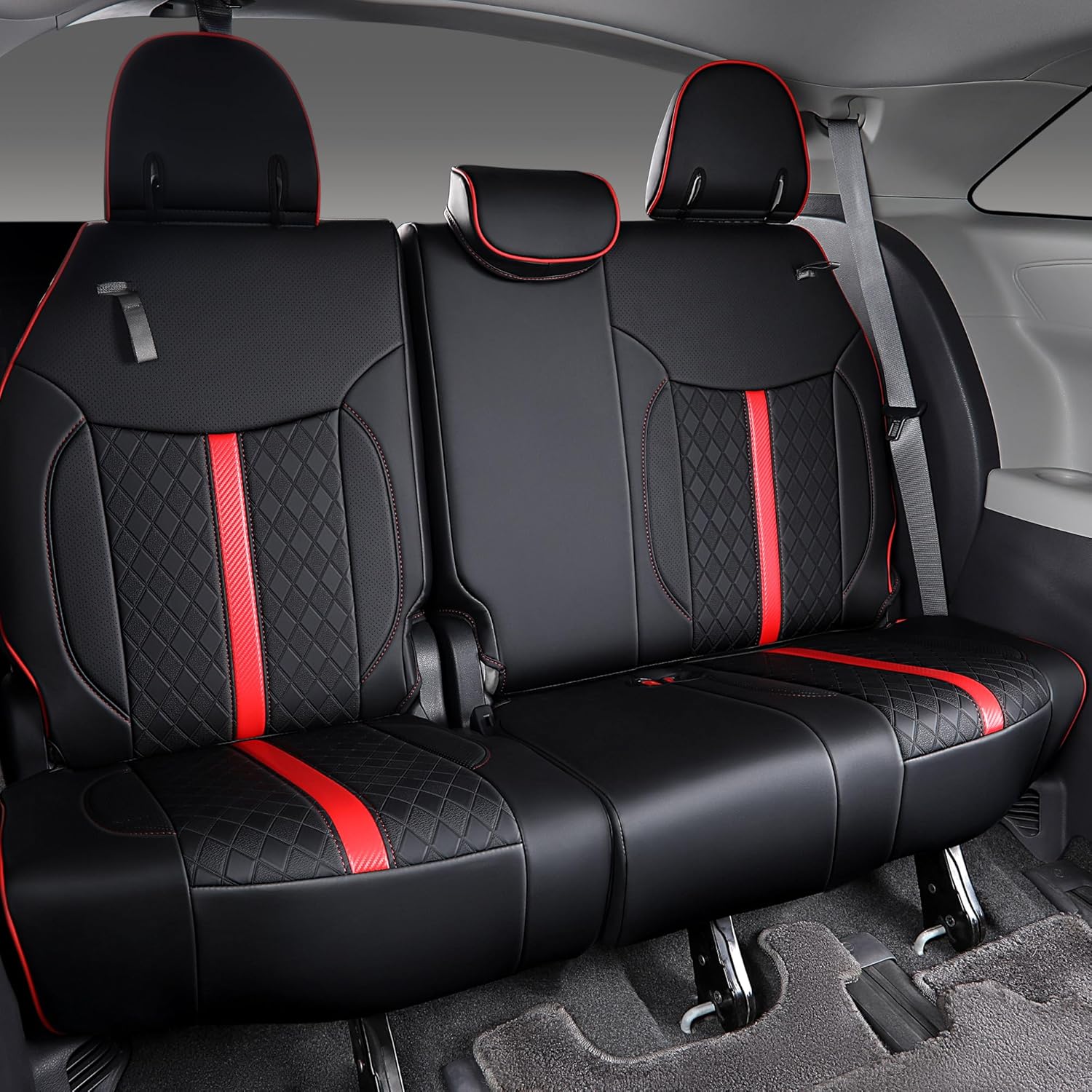 Custom Fit Sienna Seat Covers for Toyota Sienna LE,XLE 2021-2025 3-Row Accessories Full Coverage Waterproof Leather Car Seat Covers Full Set (Black with red, 7-Seat)