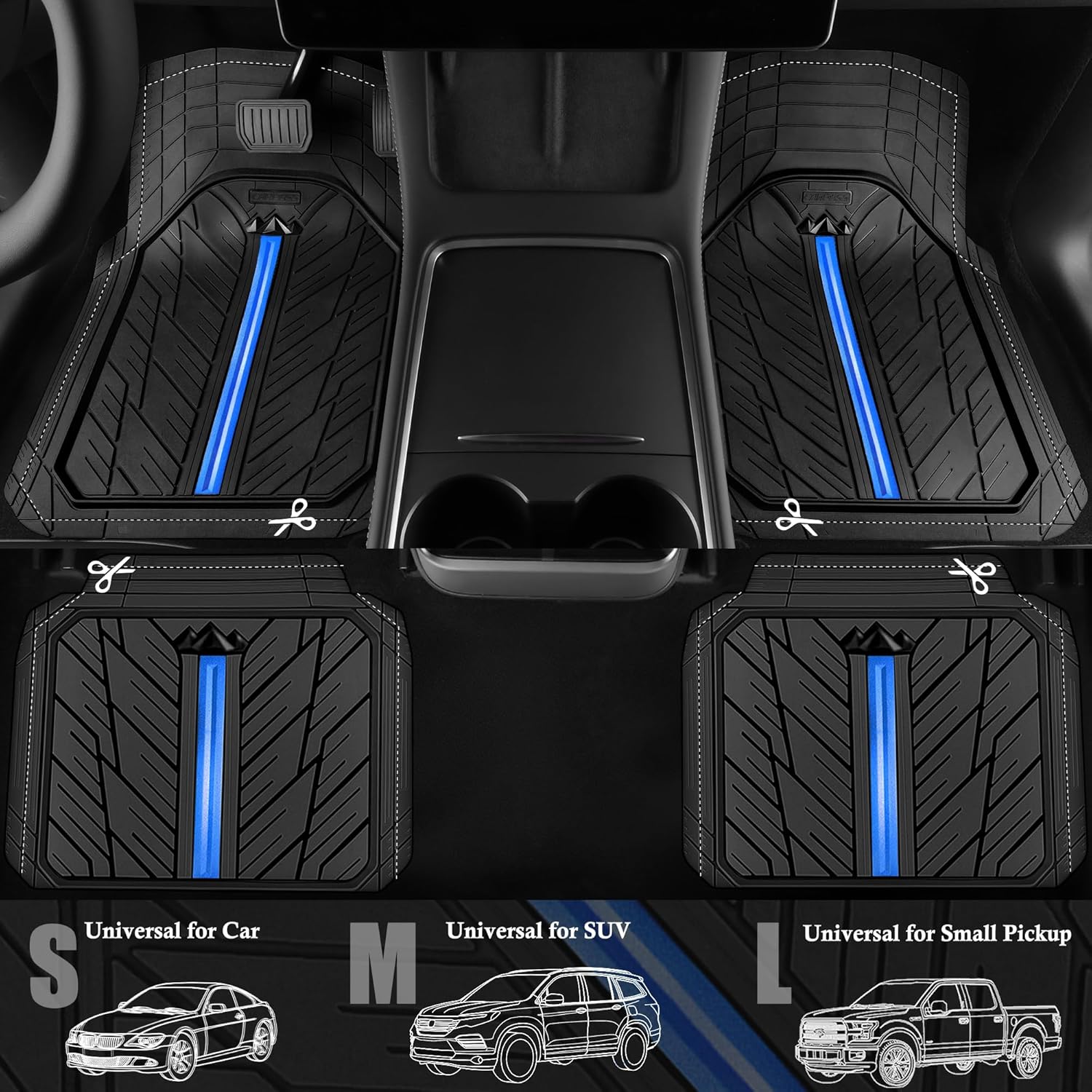 CAR PASS Metal Medium Rubber Floor Mats for Car Heavy Duty Car Mats All Weather, Universal Trim to Fit for Truck SUV Vehicle Automotive Floor Mats, Waterproof Car Mats 4 Piece Black Bule