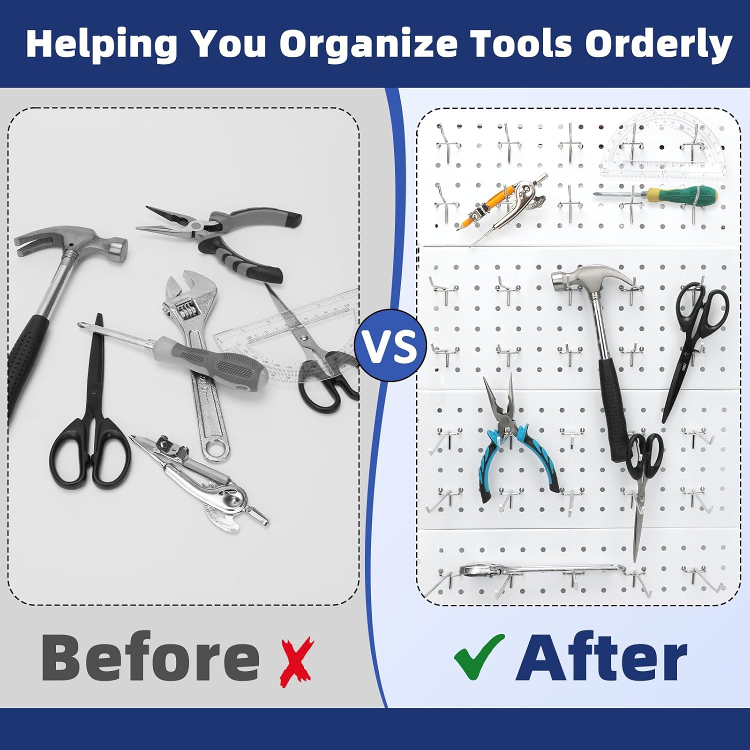 - Easy To Use: These hanging pegboard hooks easily insert into small holes without wobbling and can be removed without extra tools. Our pegboard hooks hanging tool make your space look neat and professional